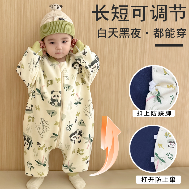 儿童睡袋秋冬加厚奥利绒分腿睡袋婴儿双面绒连体衣通用睡衣防踢被