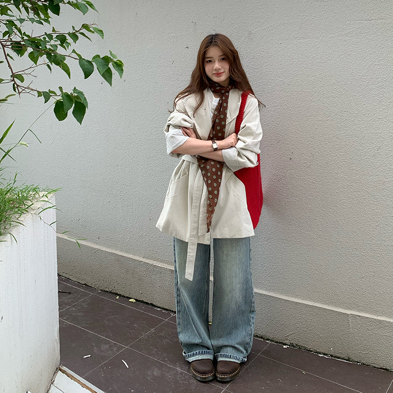 橘子树在哪儿复古单粒扣风衣外套女秋季款纯棉高级感外搭休闲上衣