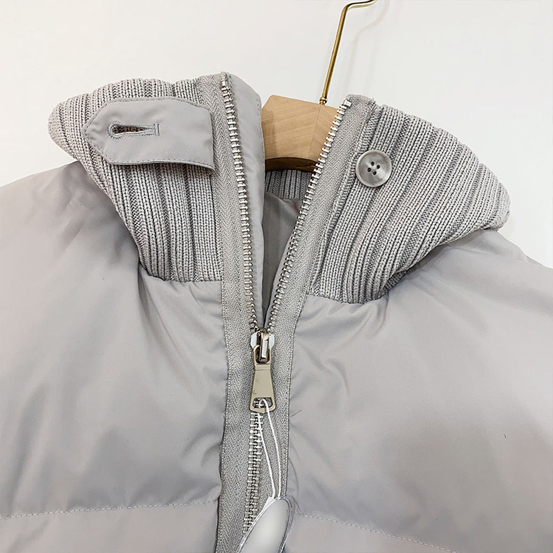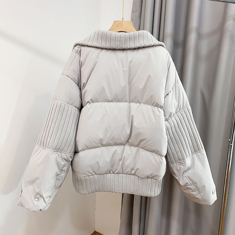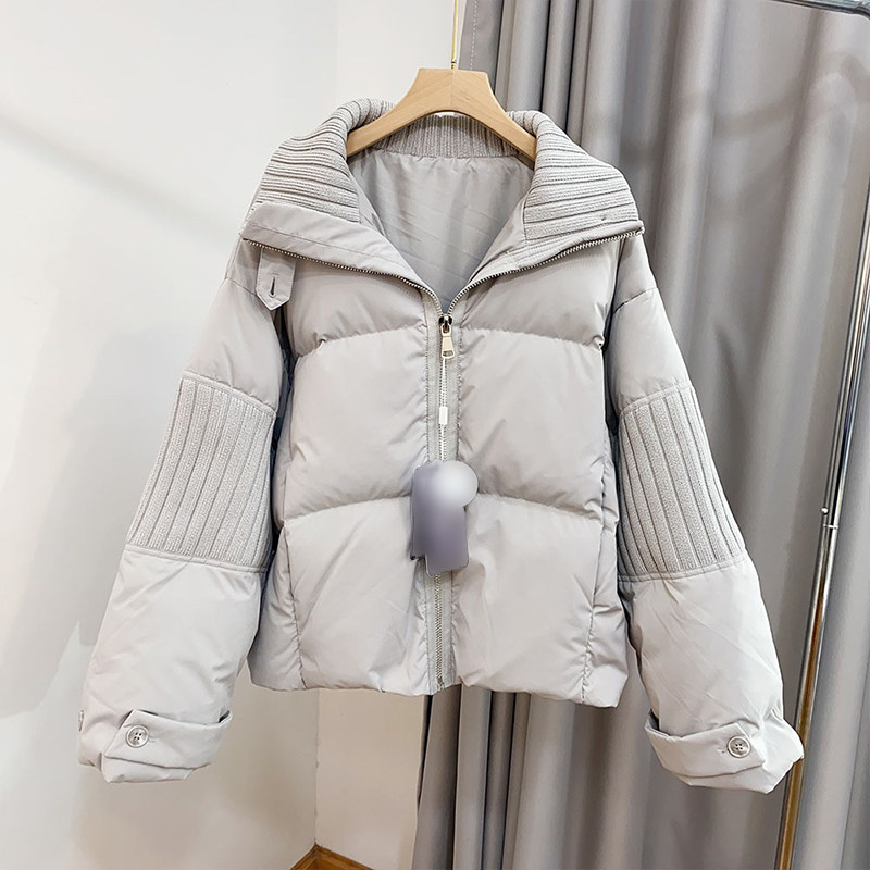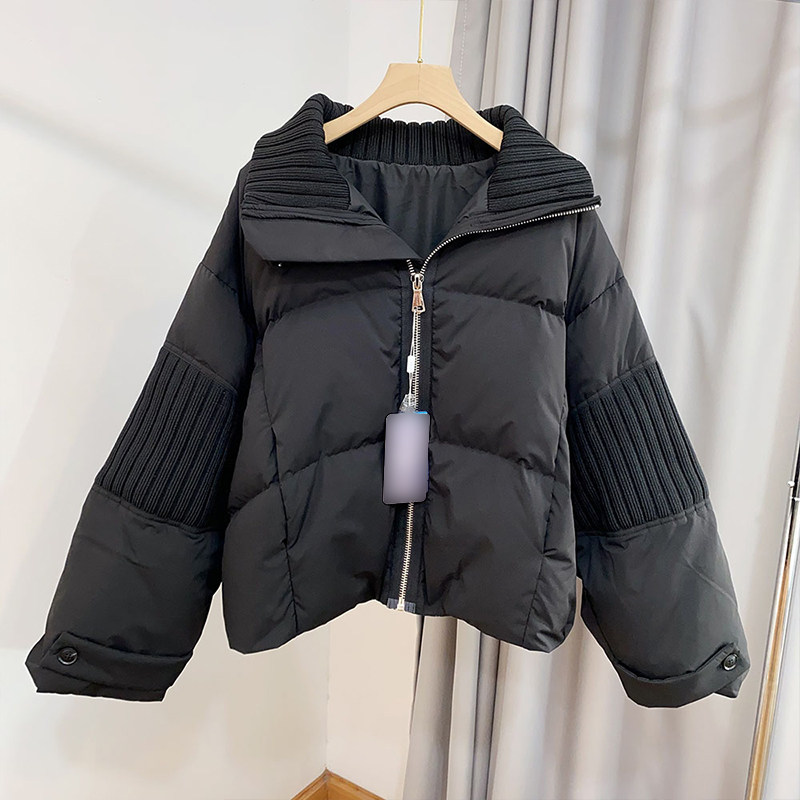 大码女装设计感针织拼接短款棉服女胖mm韩系简约立领加厚保暖外套