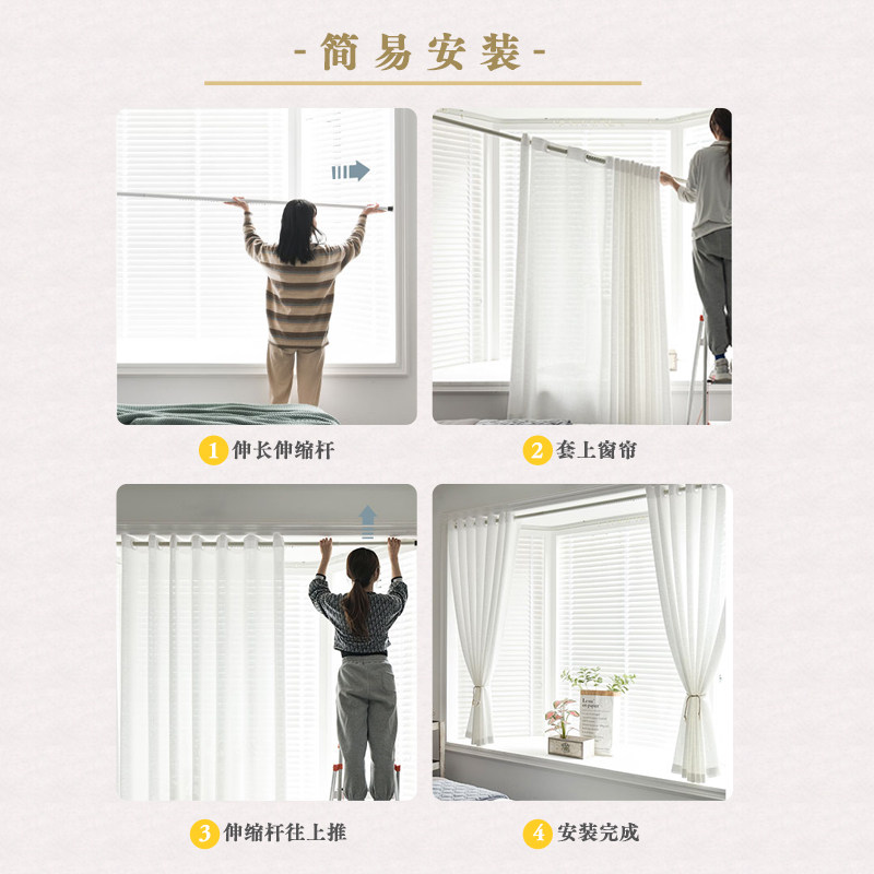 窗帘免打孔安装透光不透人白纱伸缩杆一整套纱帘卧室飘窗简易窗纱