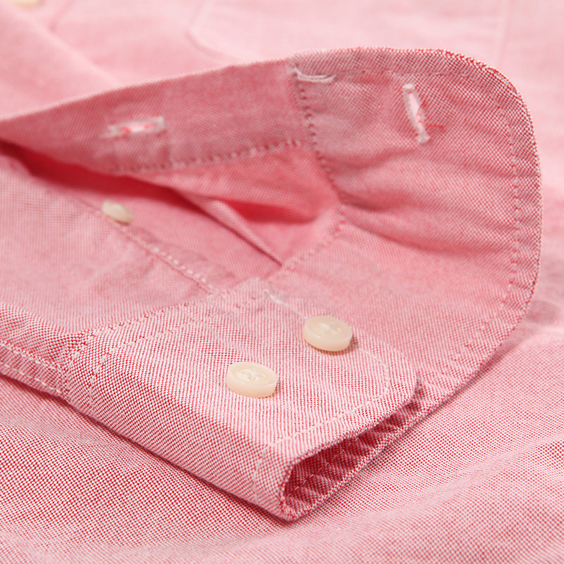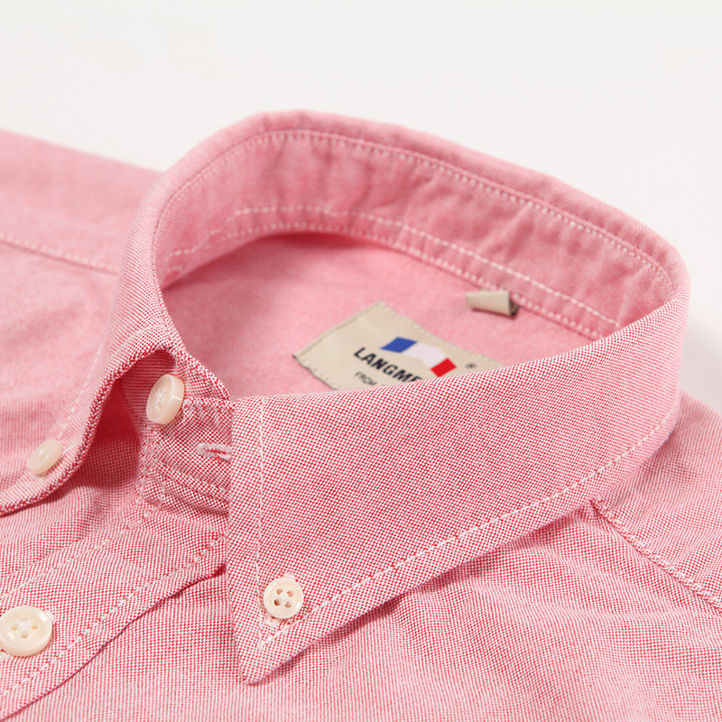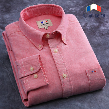 朗蒙纯棉红色牛津纺衬衫男中青年长袖韩版休闲外套内搭中式白衬衣