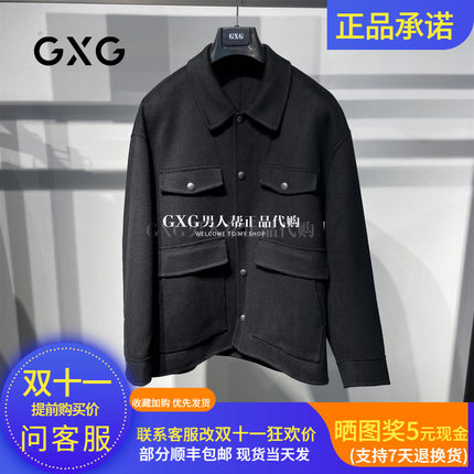 GXG男装2025冬季外套G25X064015000黑色短款羊毛大衣男G25X064015