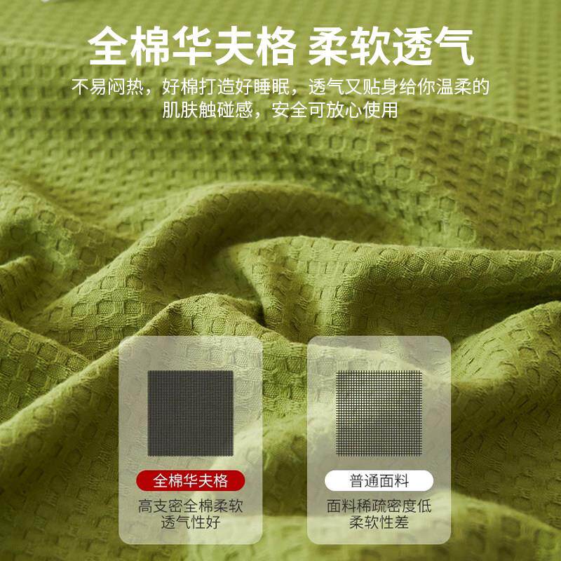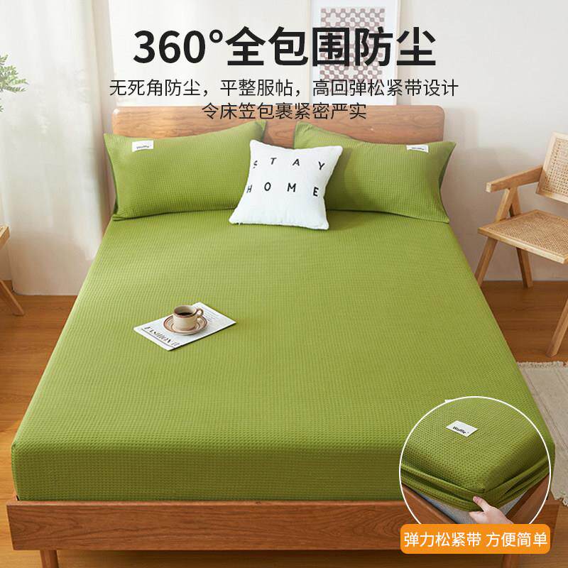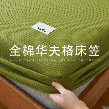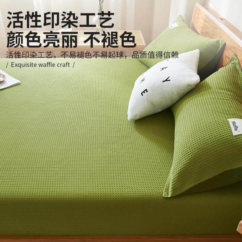 A类全棉华夫格床笠100纯棉绿色被罩单件席梦思床垫保护套防尘床单
