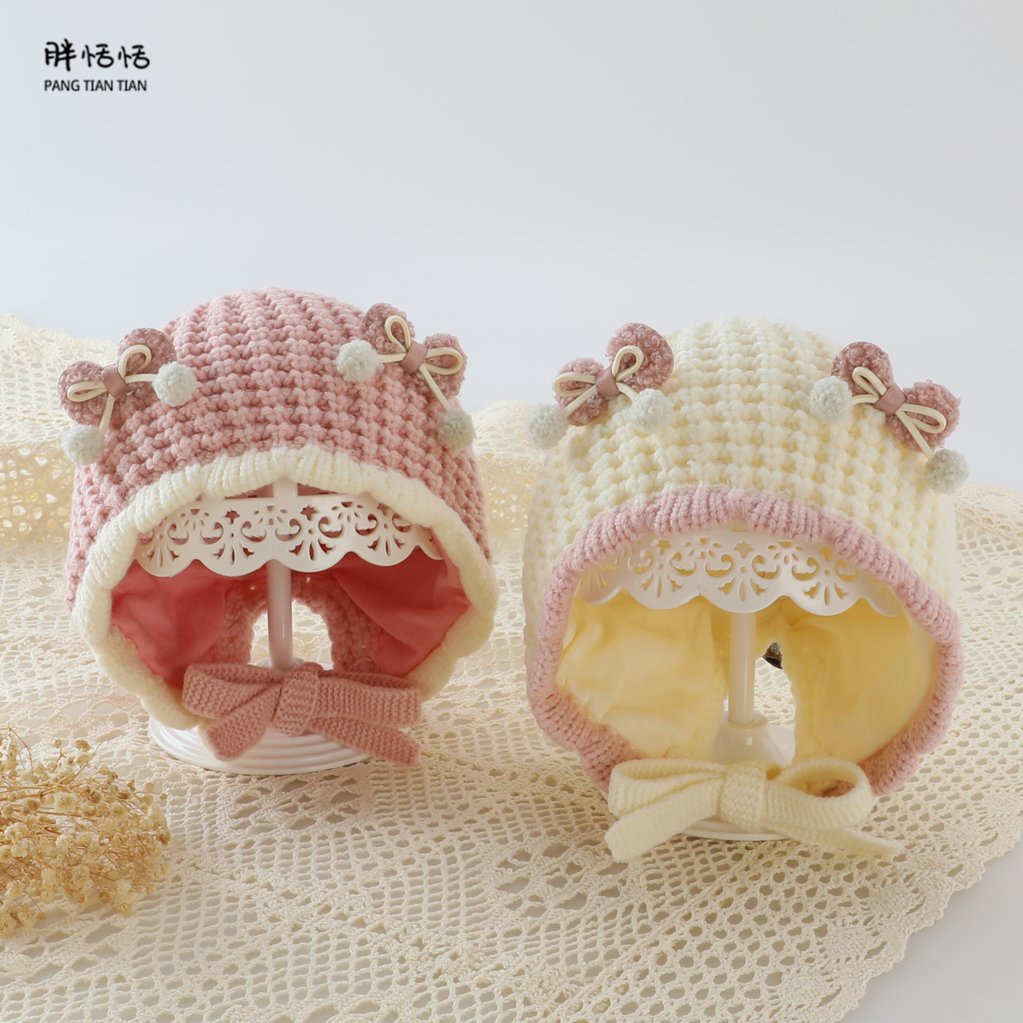 女宝宝帽子冬季超萌小月龄蝴蝶结护耳帽秋冬婴幼儿公主保暖毛线帽