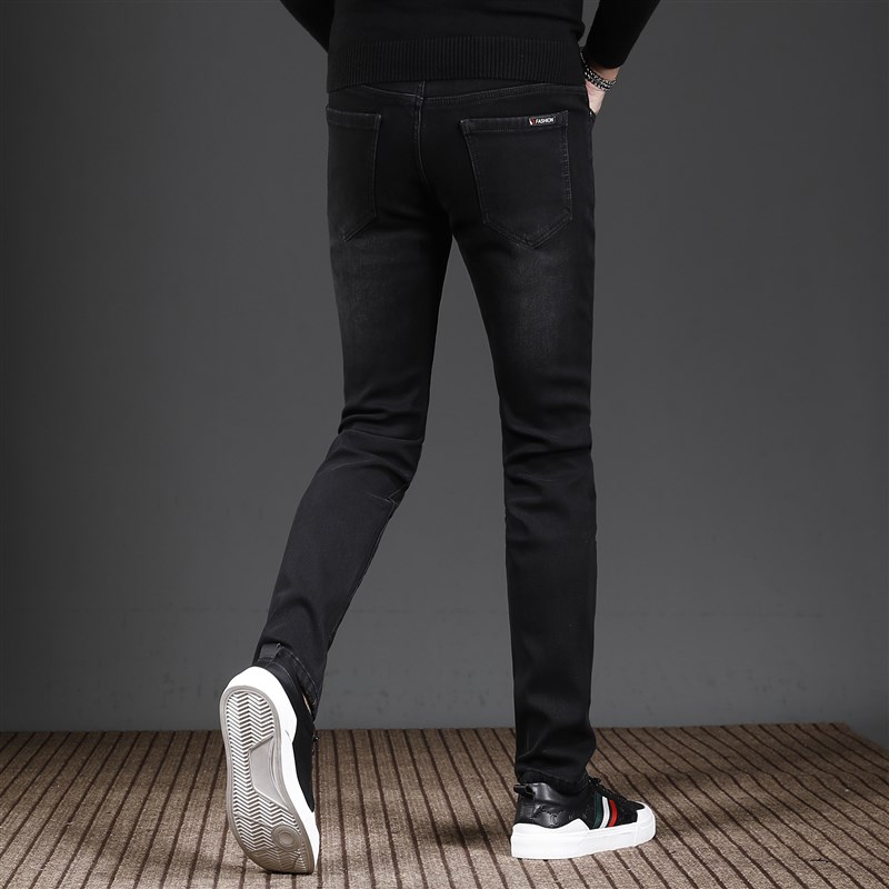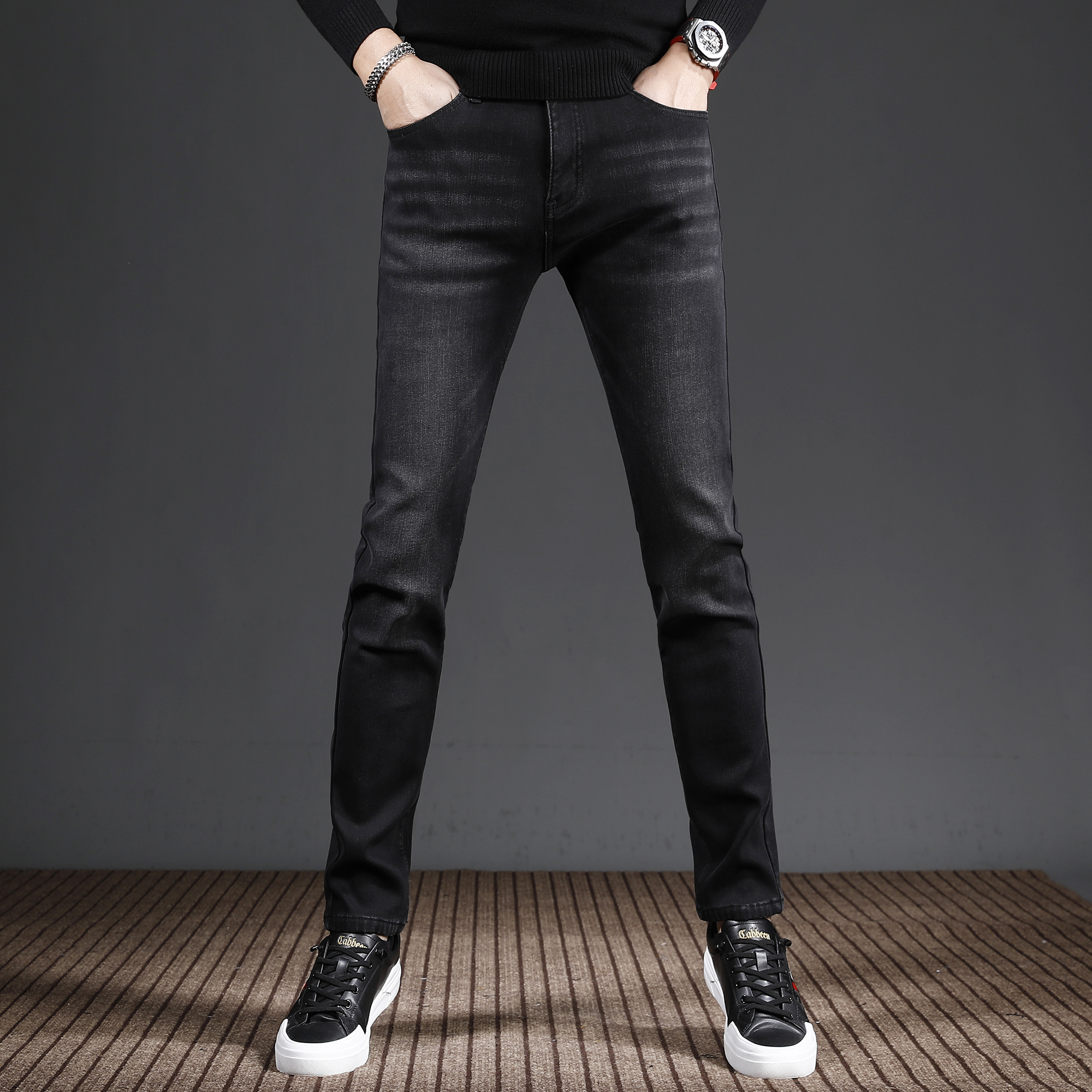 黑色牛仔裤男款春秋季修身小脚2023新款弹力百搭男士裤子男春秋款