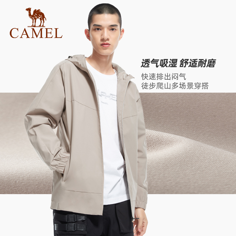 骆驼运动外套男女款连帽春秋季新款加绒可选单层软壳衣薄款夹克