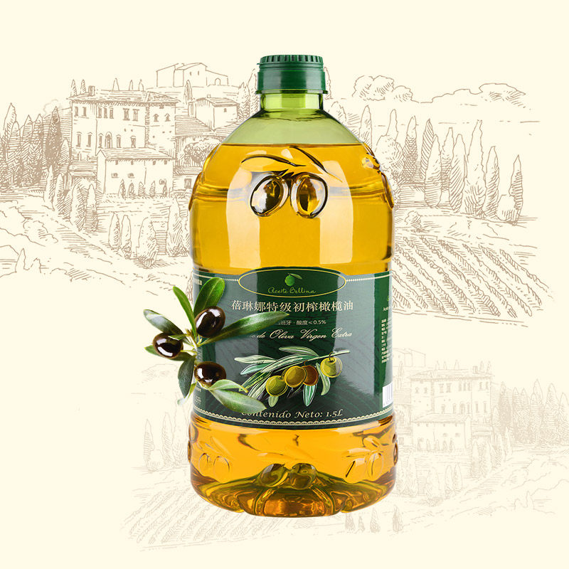 蓓琳娜欧洲原油进口100%特级初榨纯正橄榄油食用1.5L轻食炒菜家用