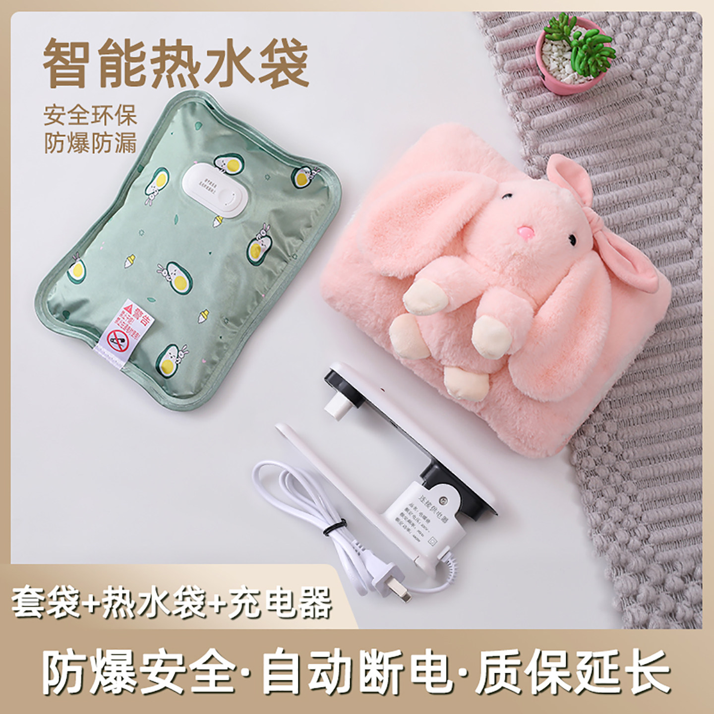 2025新款充电热水袋防爆暖水袋注水毛绒暖宝宝女暖床款卡通暖手宝