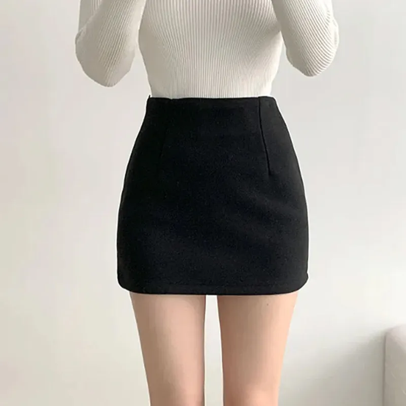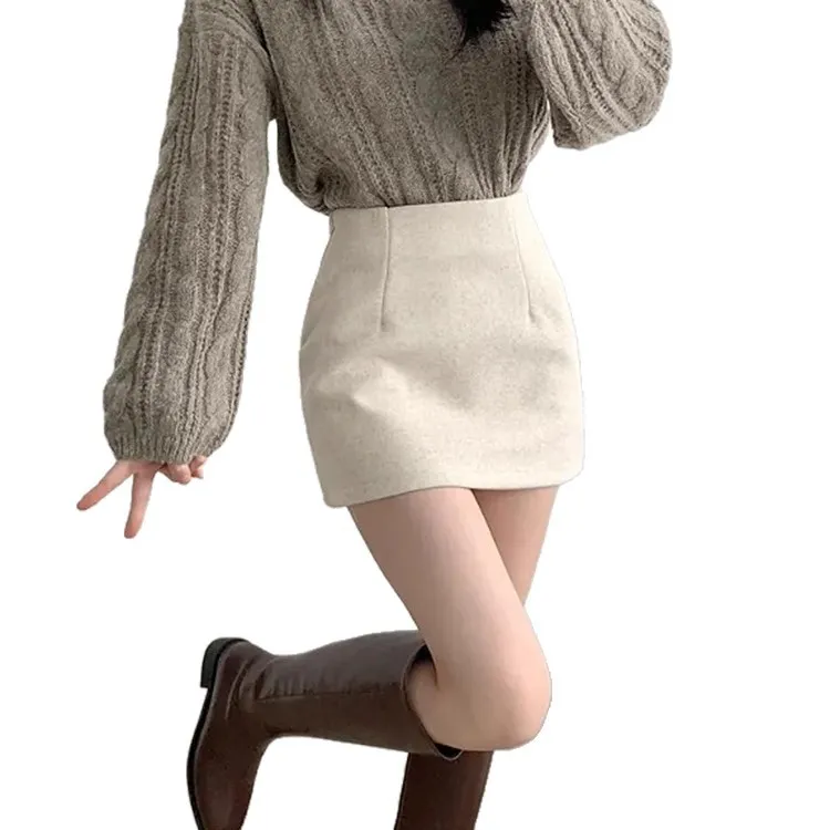 杏色毛呢半身裙包臀裙女秋冬2025新款小个子百搭通勤呢子一步短裙