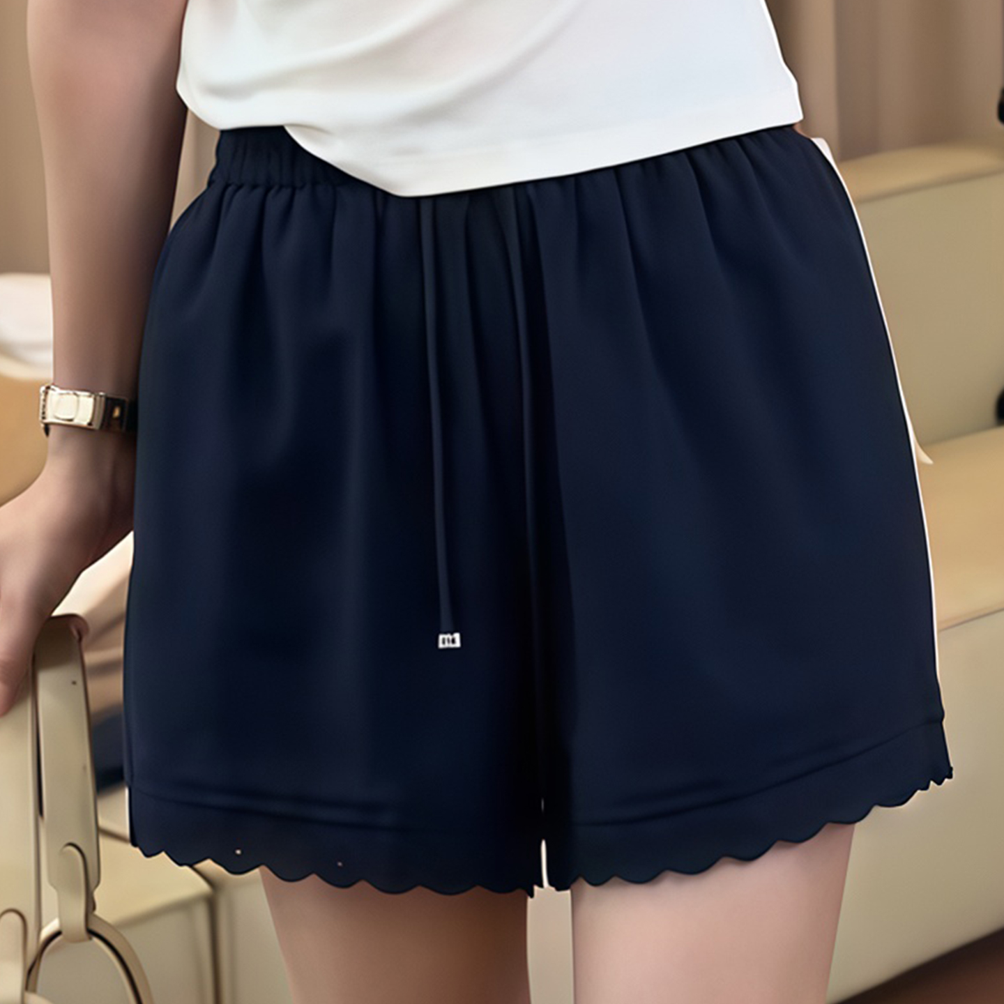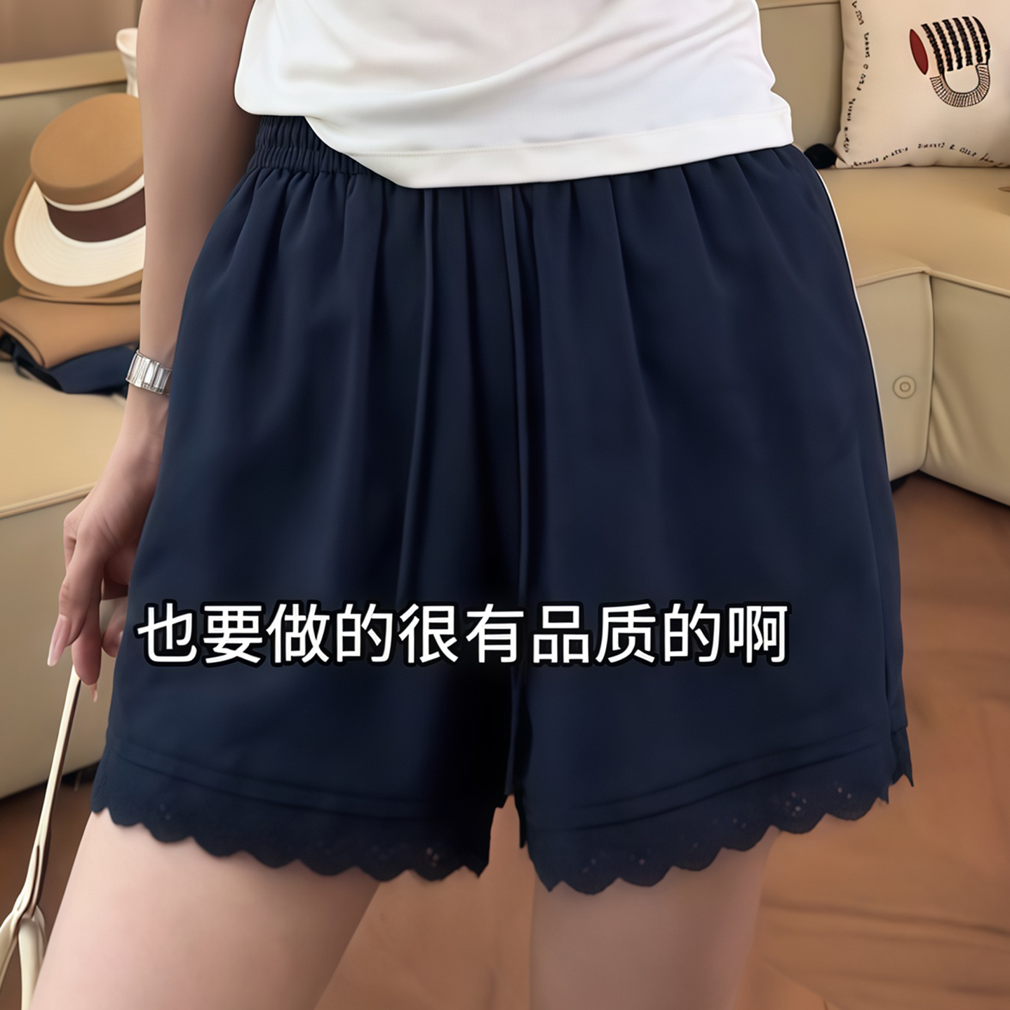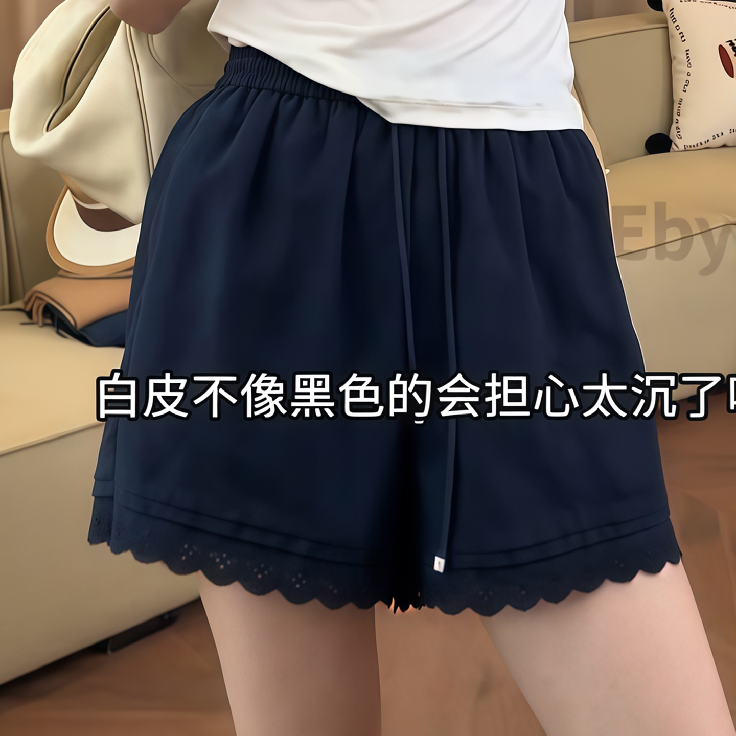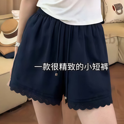 天丝亚麻蕾丝拼接休闲短裤女2025夏季新款宽松高腰百搭显瘦a字裤