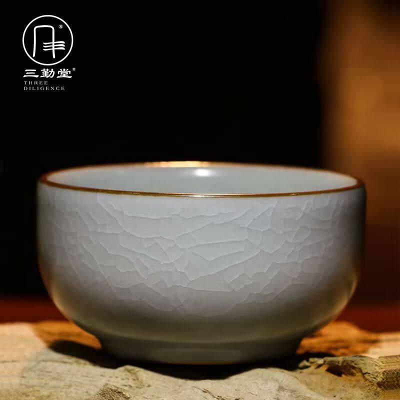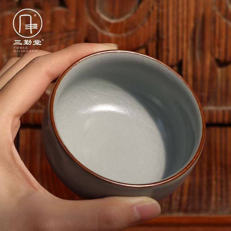 三勤堂汝窑茶杯主人杯单杯景德镇陶瓷大号开片品茗杯茶盏功夫茶具