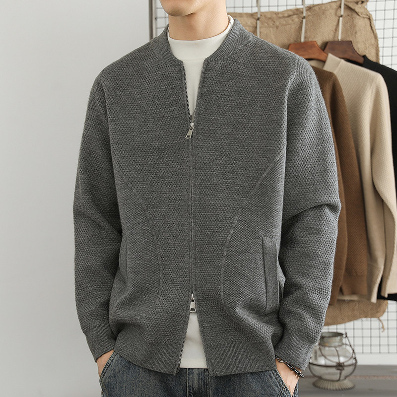 重磅开衫!轻熟休闲风!双头拉链针织毛衣外套秋冬纯色休闲上衣潮