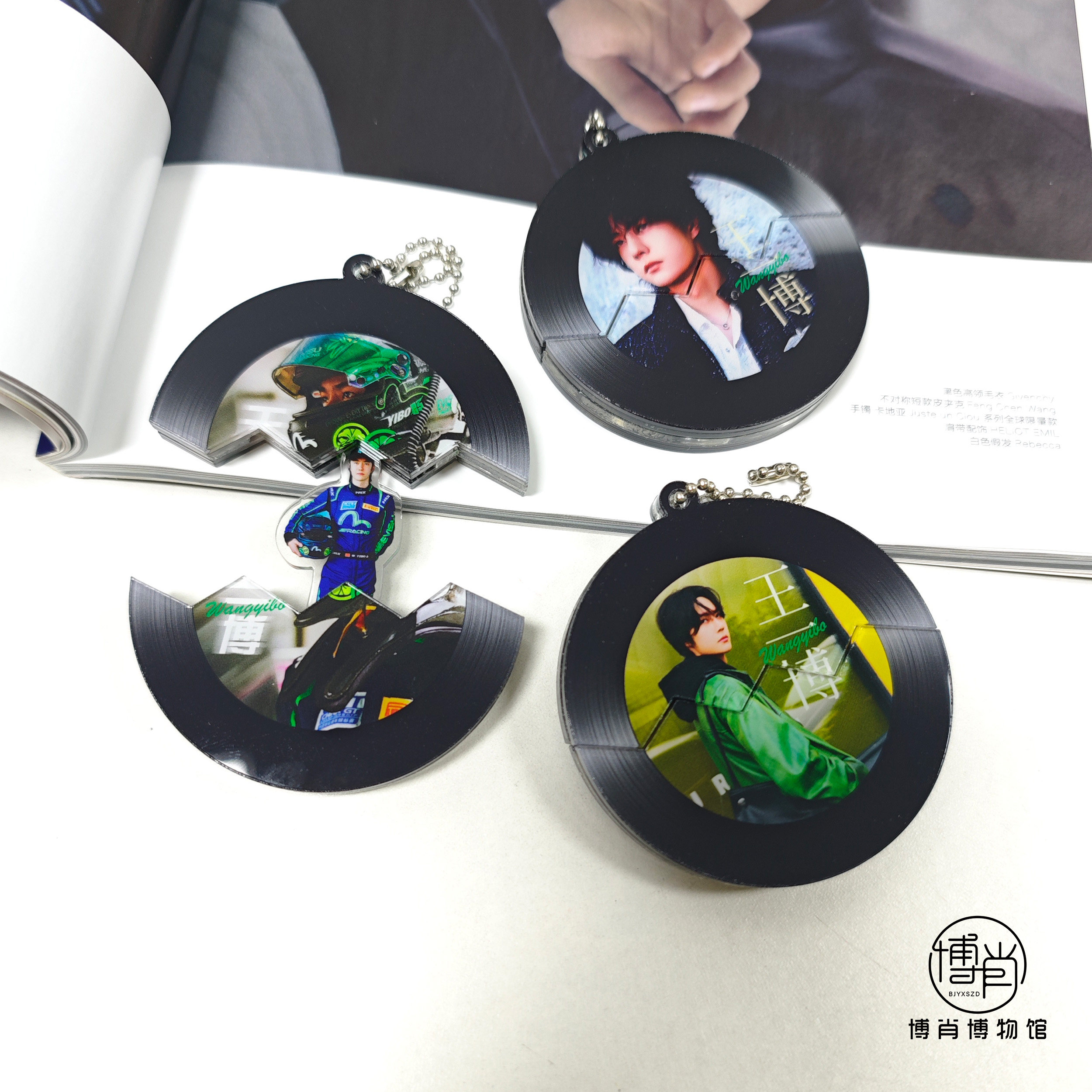 王一博周边定制挂饰包挂件钥匙扣赛车85时装周复古黑胶唱片抽拉蛋
