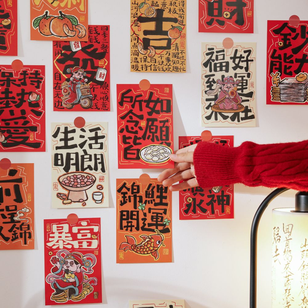 新年氛围装饰卡片春节房间布置爱心墙贴财神背景墙装扮祝福明信片