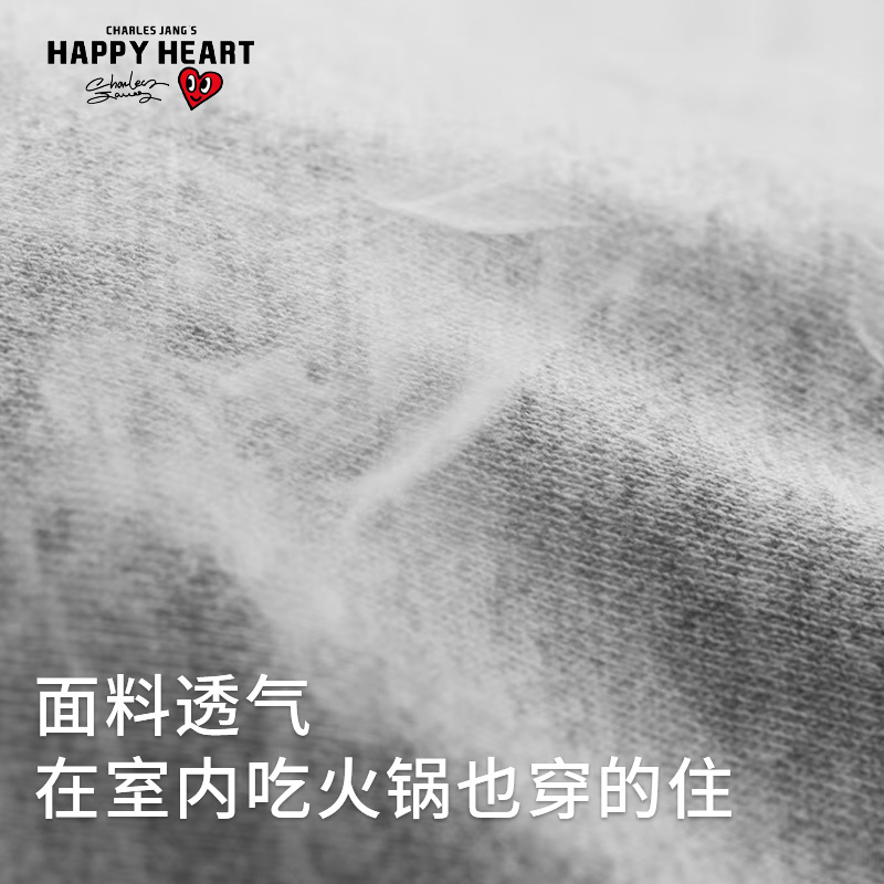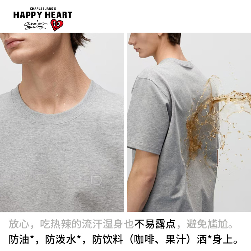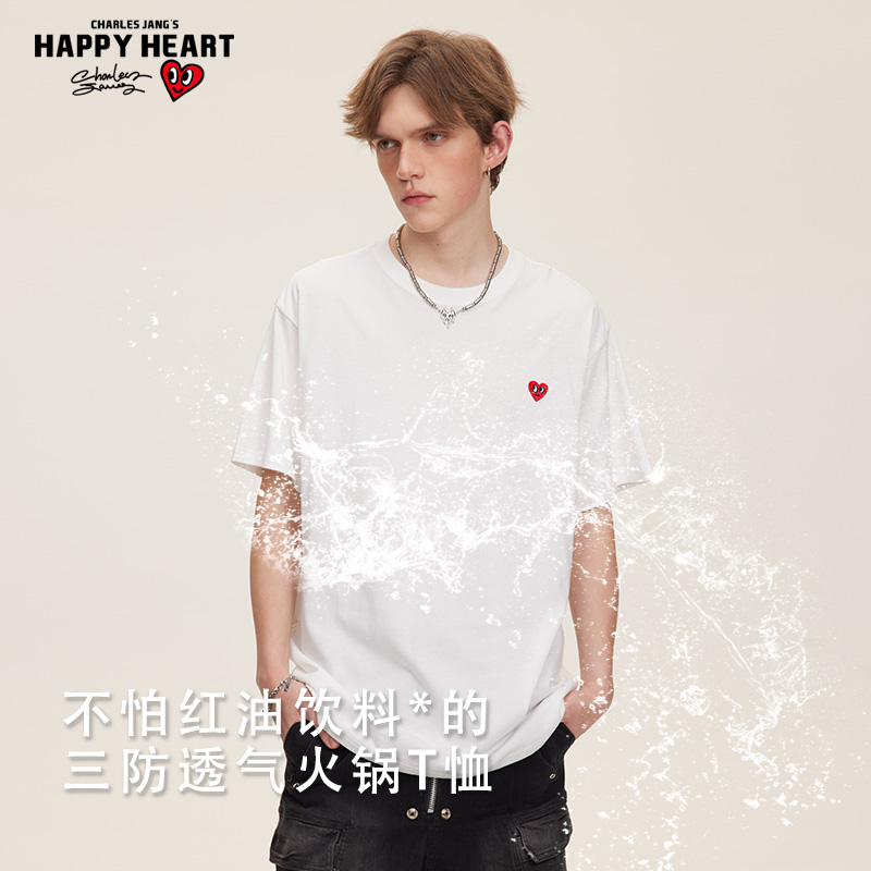 查尔斯桃心 短袖t恤男爱心刺绣纯棉三防夏季新款华夫格圆领半袖