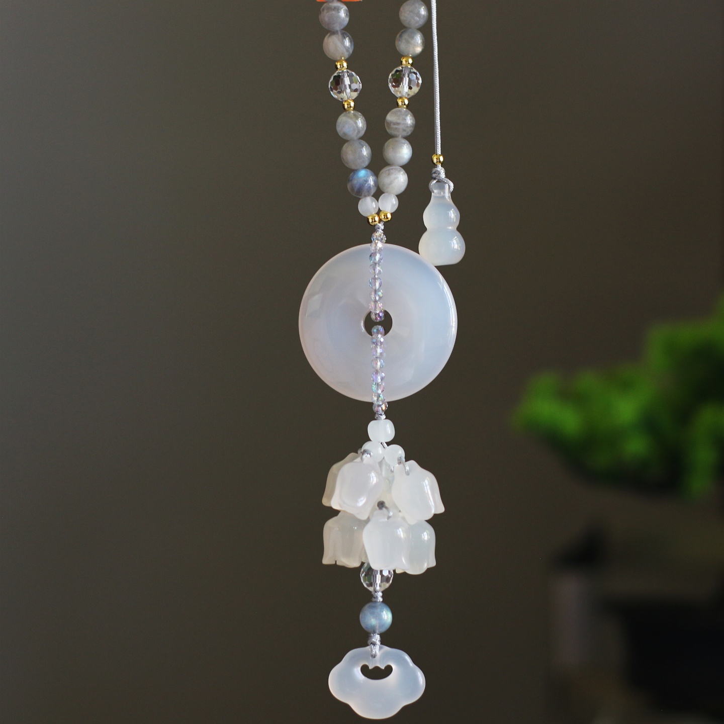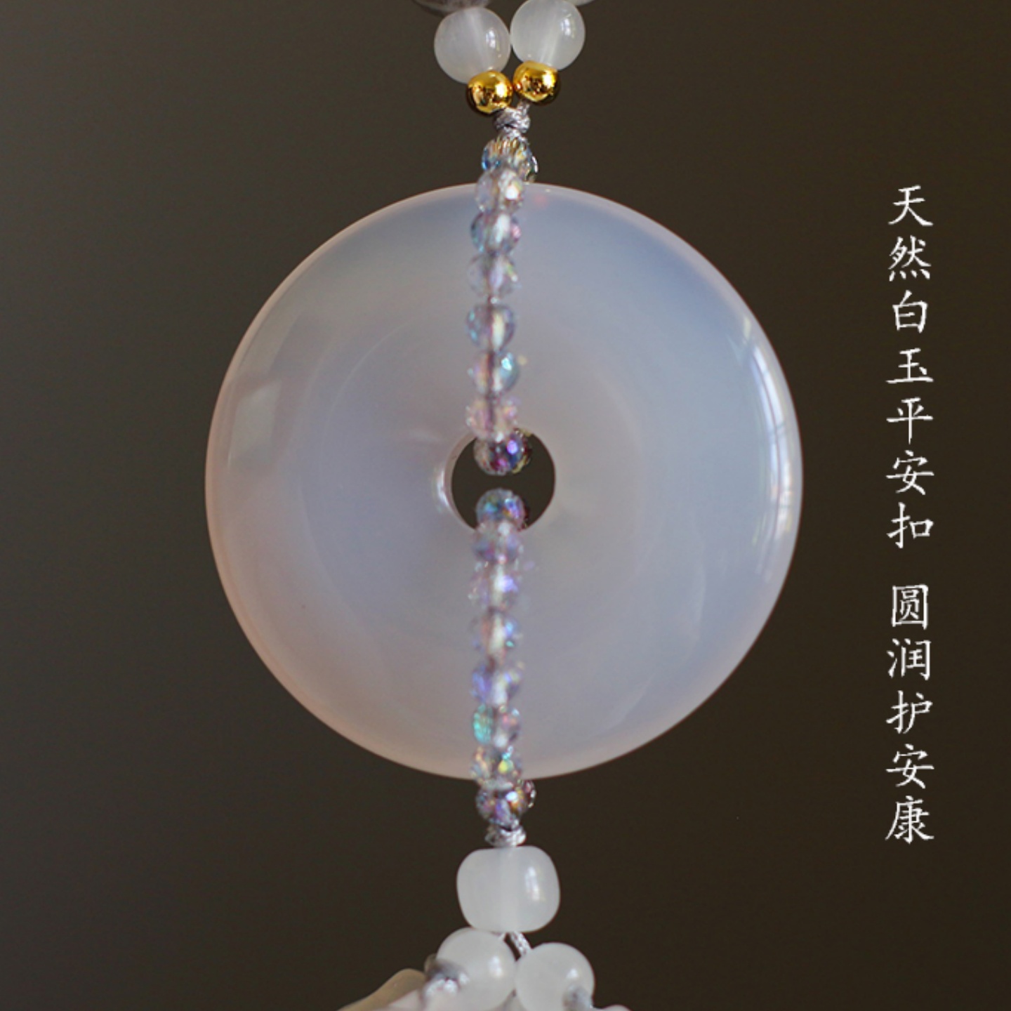 平安扣汽车挂件天然玉髓平安锁高档精致玉兰花吊坠车内饰品后视镜
