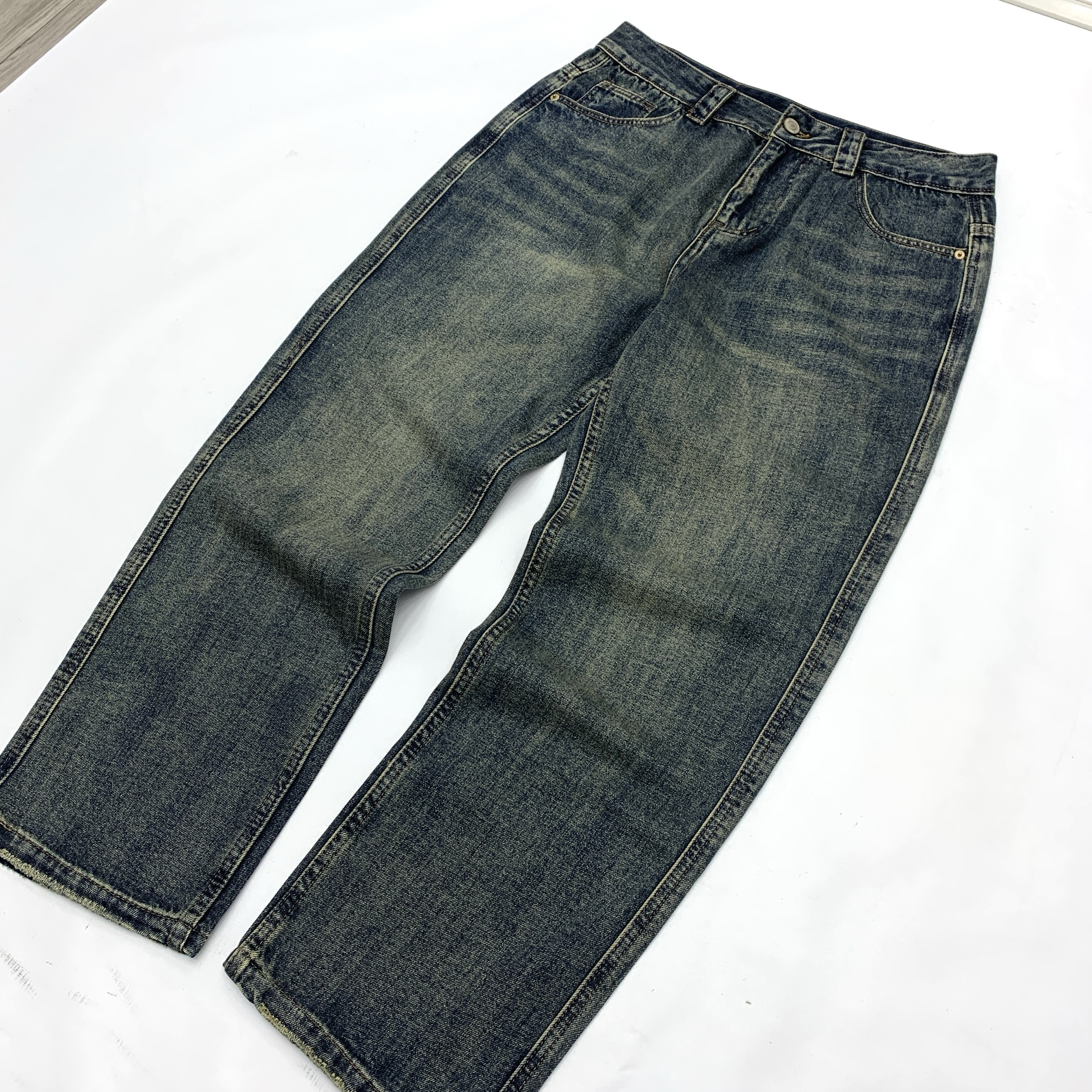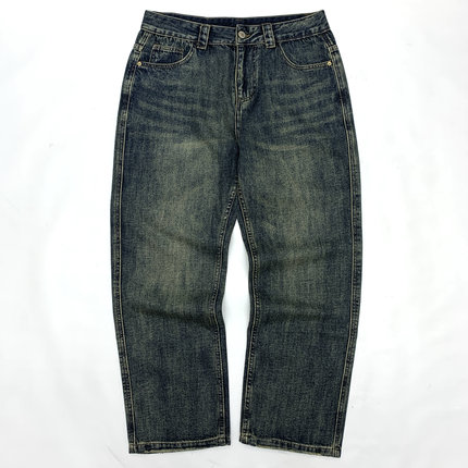 美式复古重磅水洗做旧牛仔裤男