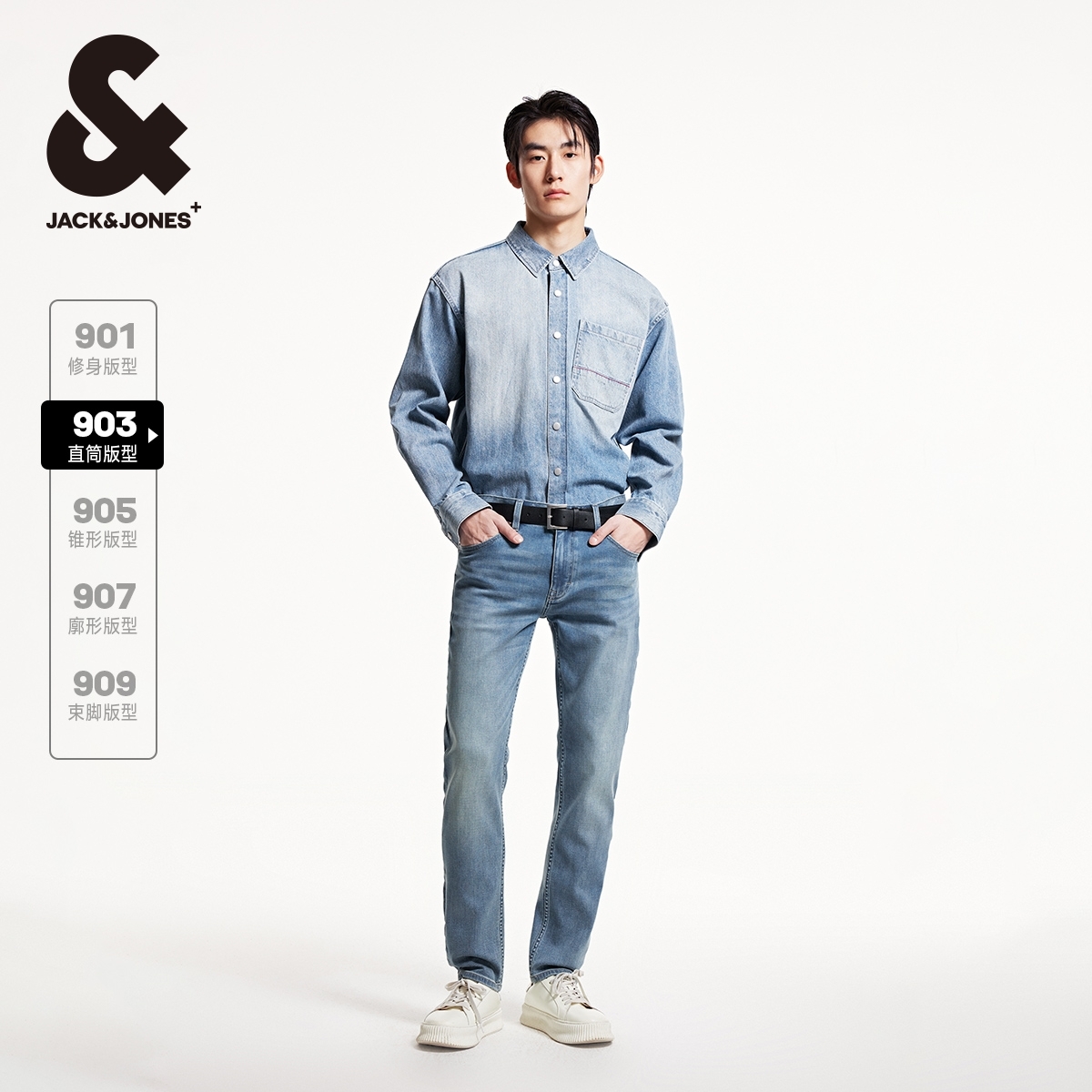 杰克琼斯奥特莱斯春YKK拉链水洗日常舒适休闲直筒牛仔裤男裤男装