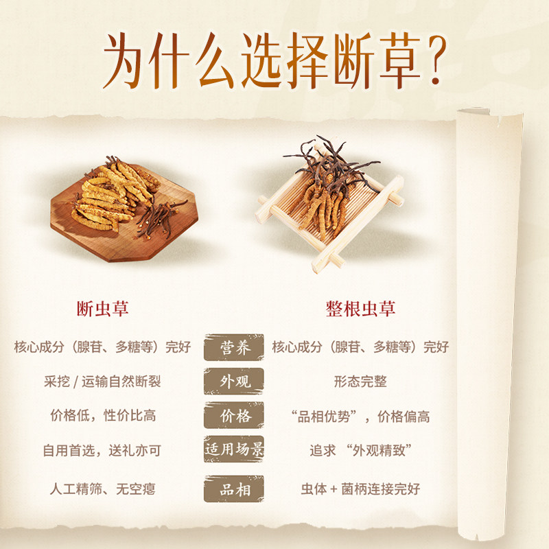 胡庆余堂冬虫夏草正品10g断草滋补营养品虫草自用款礼盒装官方