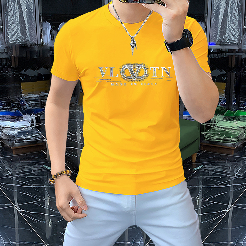 2025夏季轻奢男装欧货短袖男士新款高端潮流黑色印花圆领半袖T恤