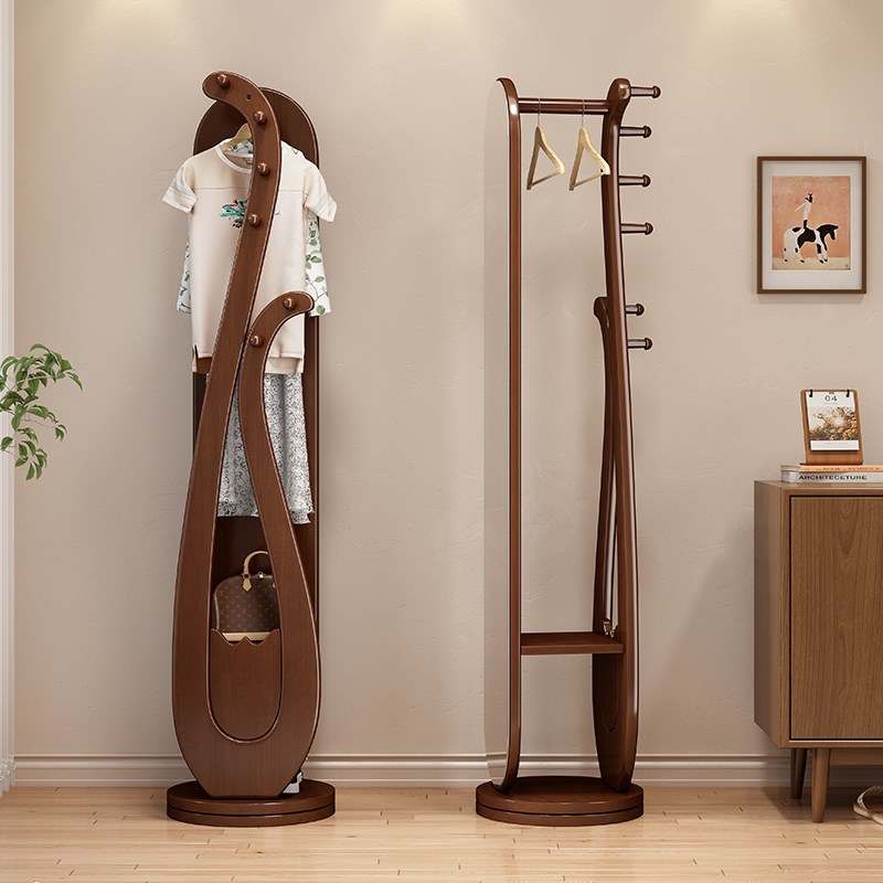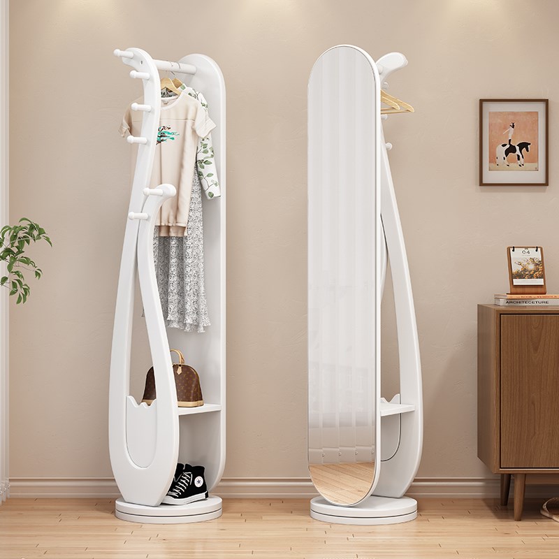 中式全实木衣帽架穿衣镜一体衣架家用卧室客厅可旋转挂衣架落地