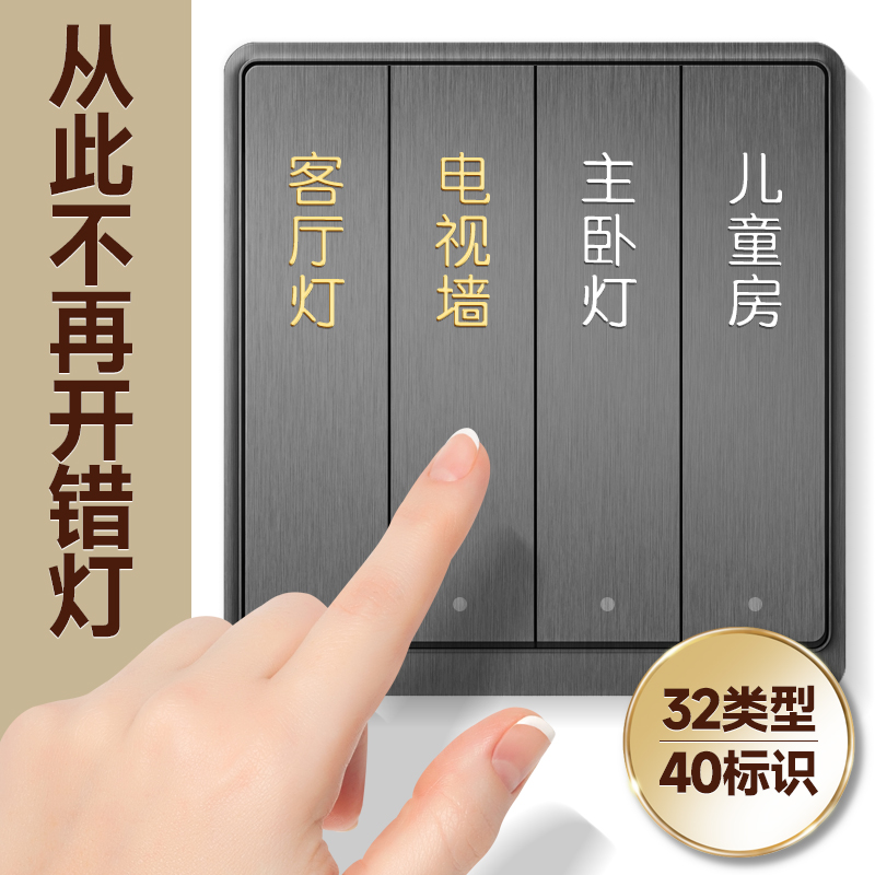 撕膜留图镂空灯开关标识贴轻奢家用创意面板开关装饰墙贴纸水晶标