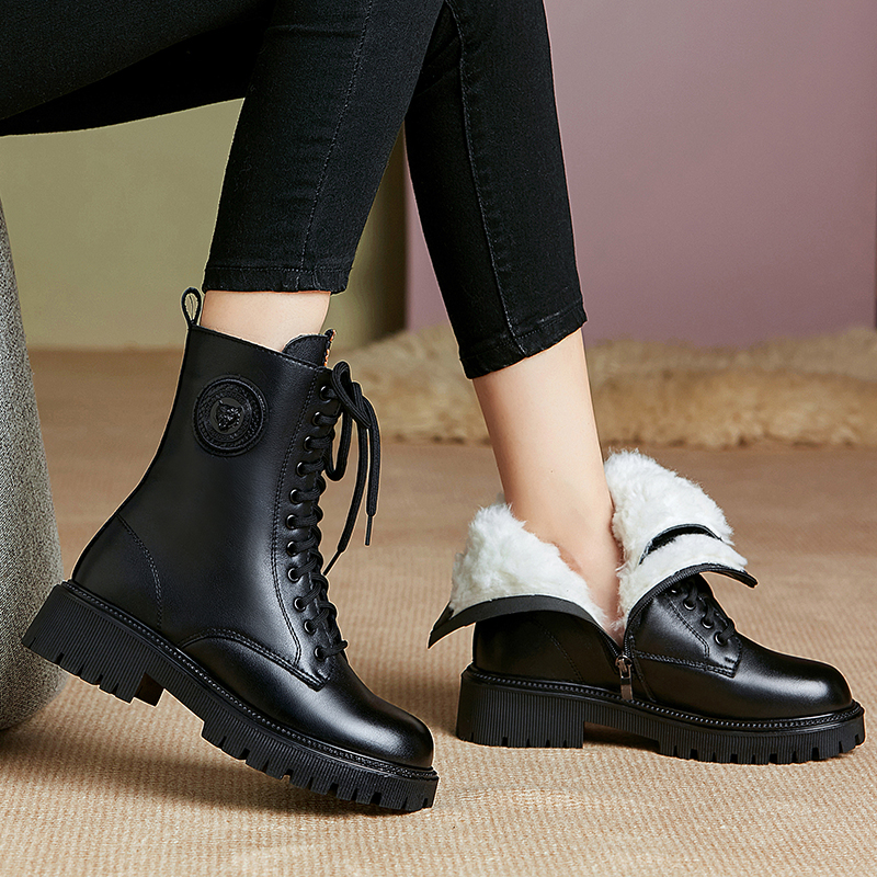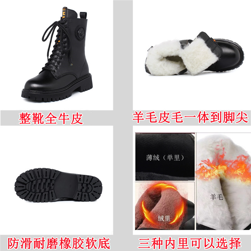 马丁靴女冬季加绒厚底短靴真皮羊毛大棉鞋中筒雪地靴皮毛一体女鞋