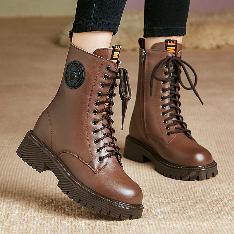 【全牛皮】马丁靴加绒厚底大棉鞋