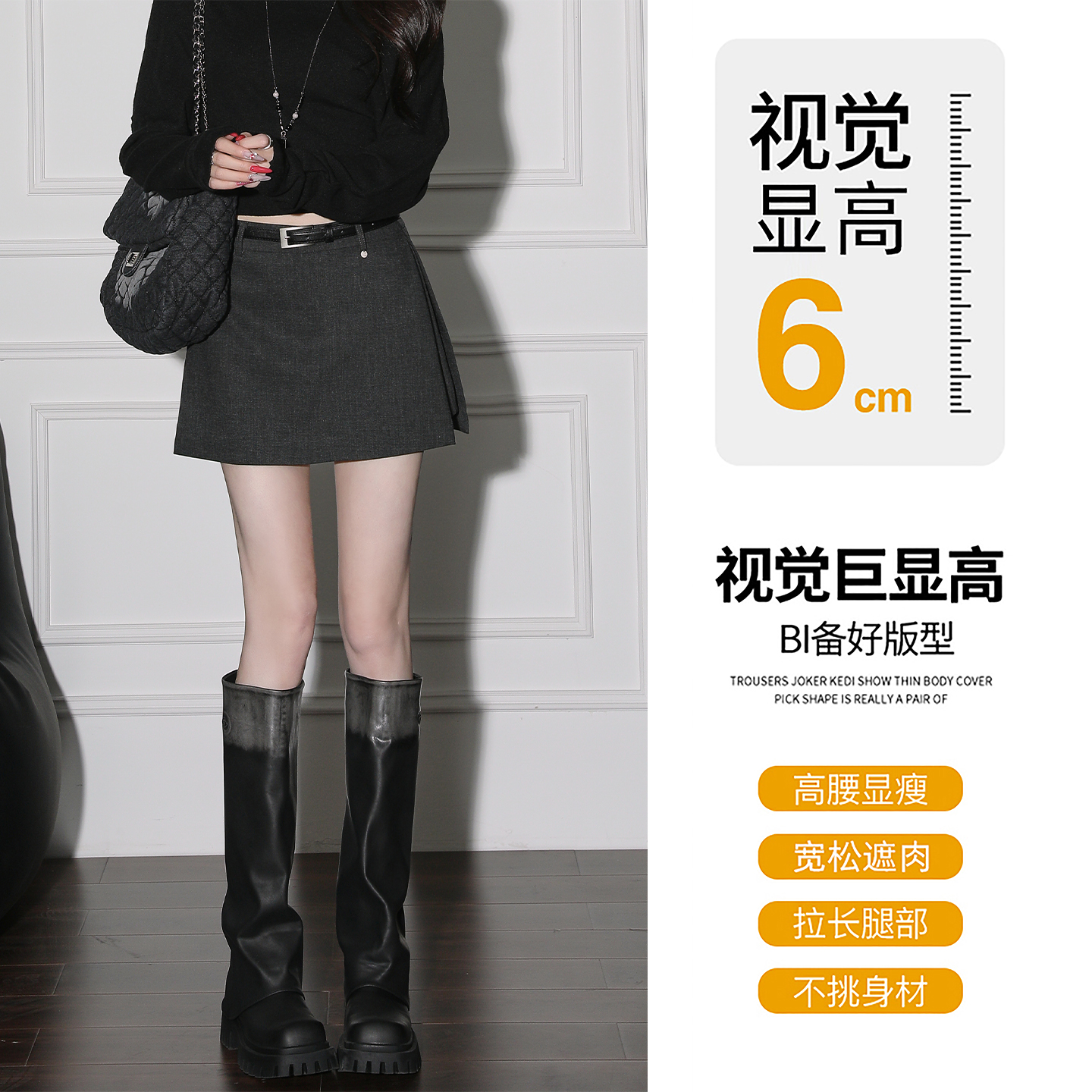 灰色高腰西装半身裙女春秋高级a字短裙小个子显瘦侧开叉包臀裙裤