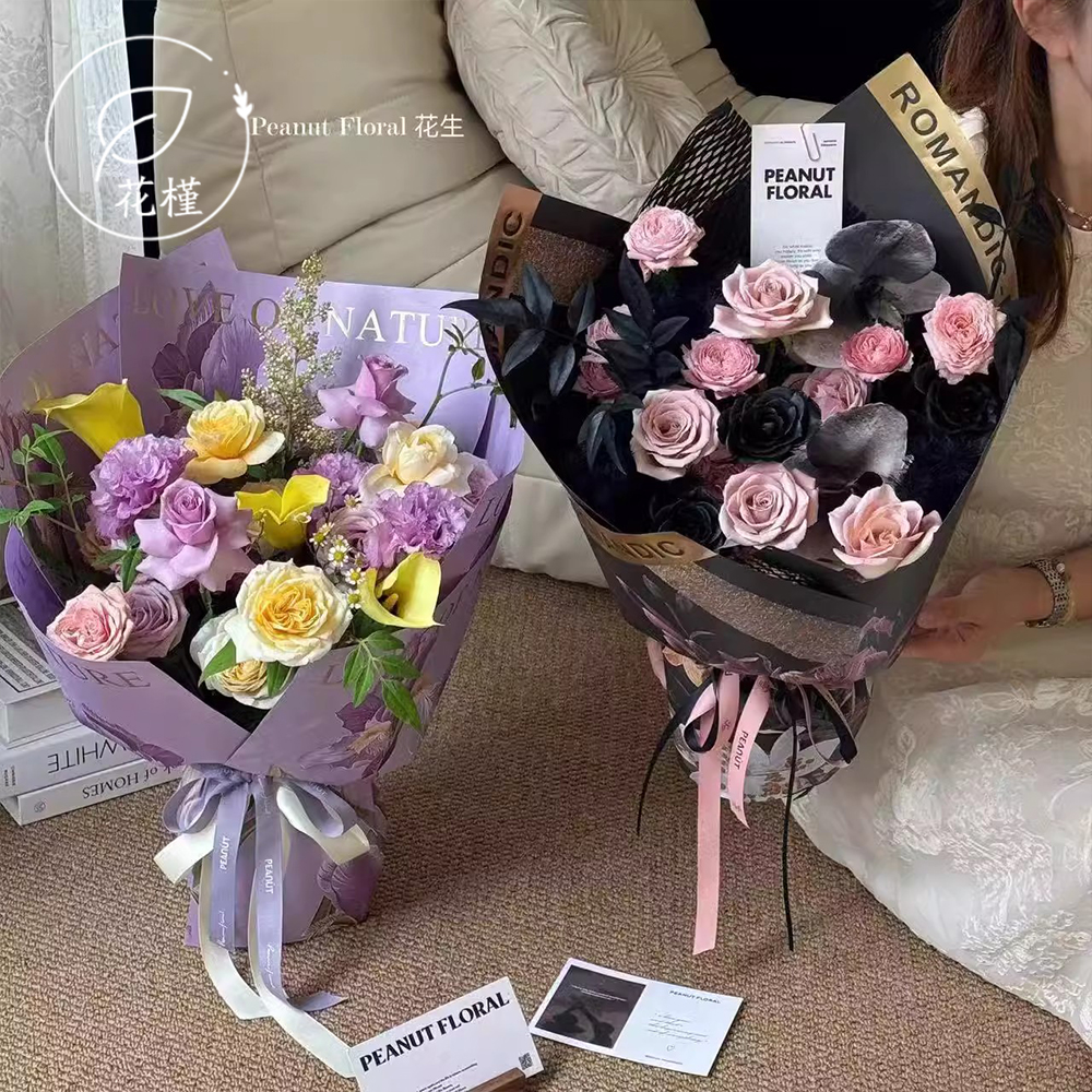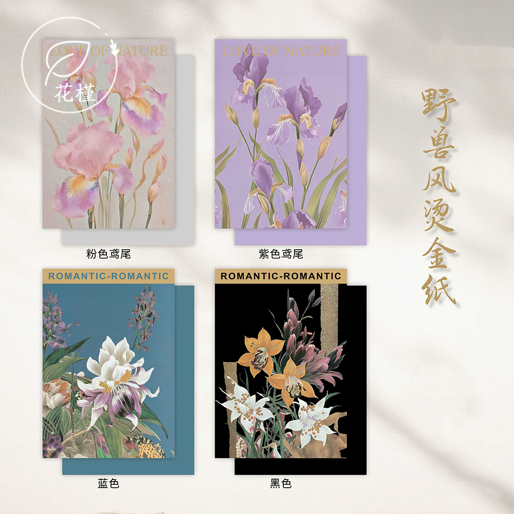 新款野兽派花卉七夕情人节烫金包装纸花艺鲜花手工材料花店花纸