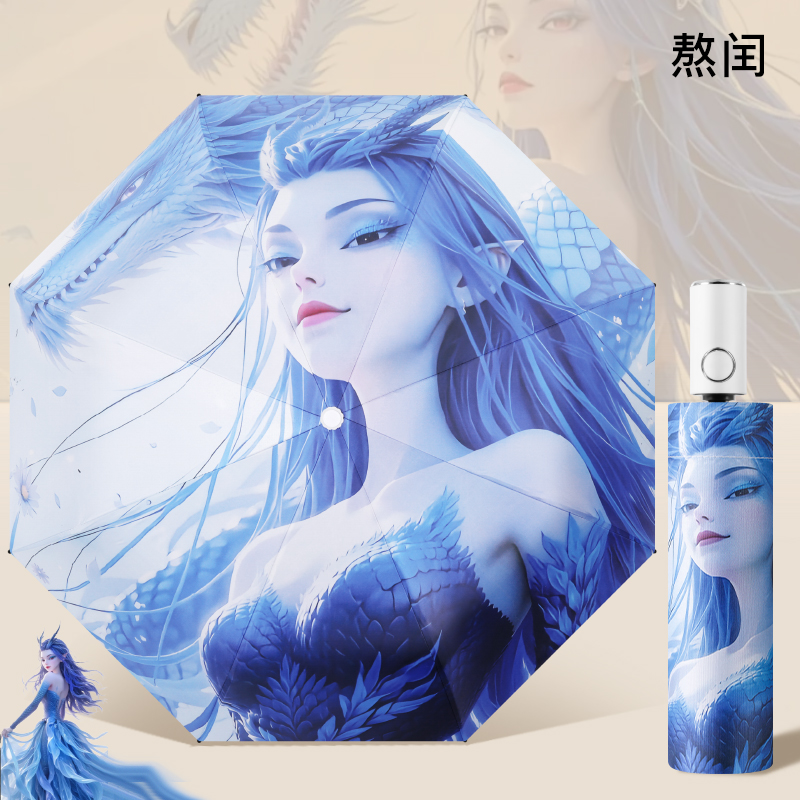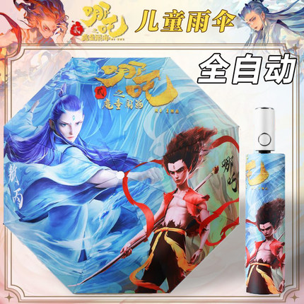 哪吒全自动儿童雨伞男女生黑胶防晒学生上学专用折叠太阳伞遮阳伞