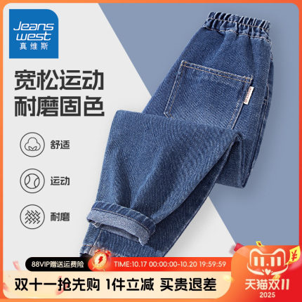 真维斯童装男童牛仔裤秋冬款2025新款男孩秋装裤子儿童加绒长裤秋