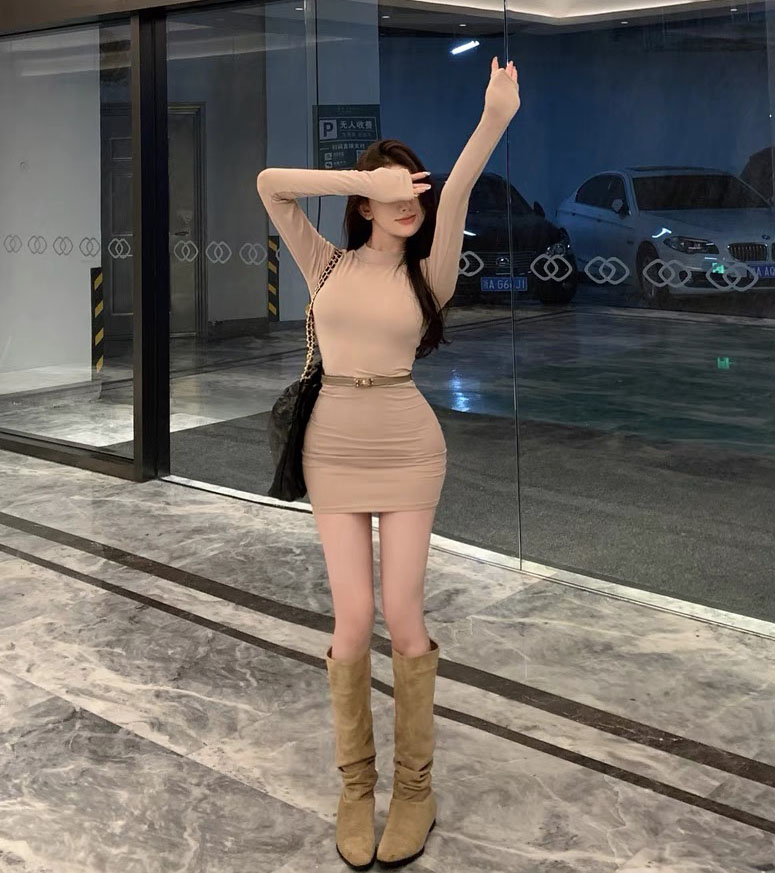 黑色长袖针织连衣裙女秋冬打底裙辣妹修身中长裙性感收腰包臀裙