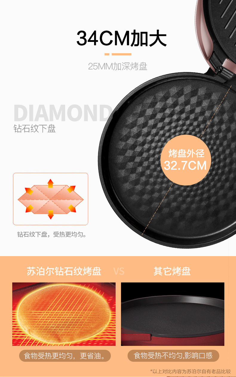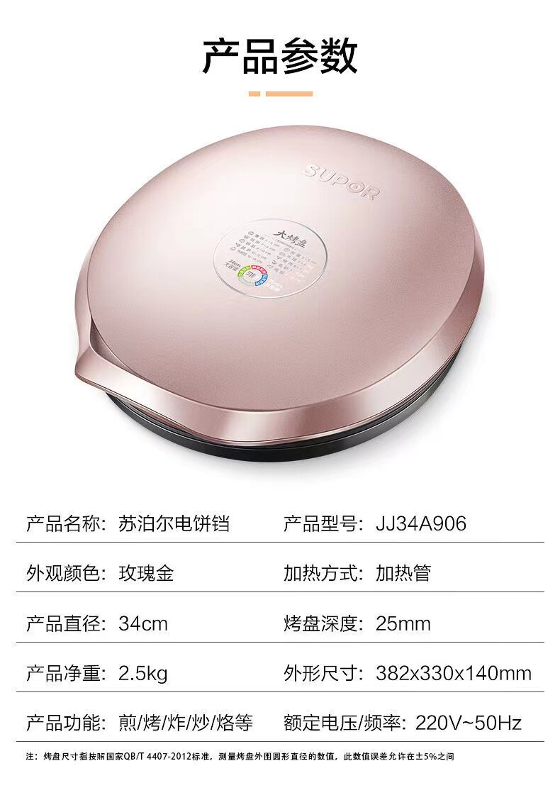 苏泊尔电饼铛新款家用加深加大双面智能控不粘烙煎烤薄饼机34A906