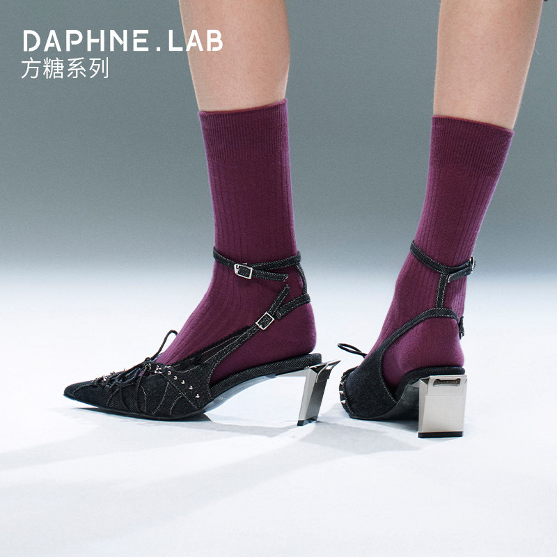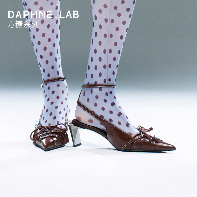 DAPHNE LAB方糖脚踝绑带后空鞋26春穆勒鞋高跟凉鞋女鞋休闲尖头鞋