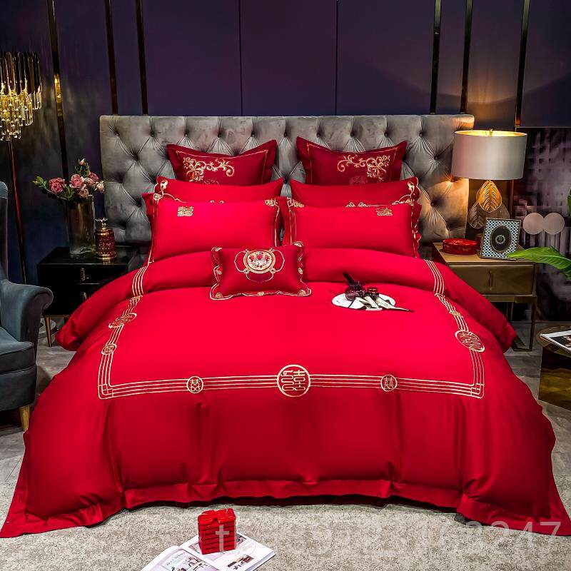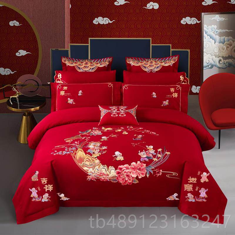 正品高端婚庆床刺上四件套00结支全棉纯棉床单1被套百子图龙凤绣