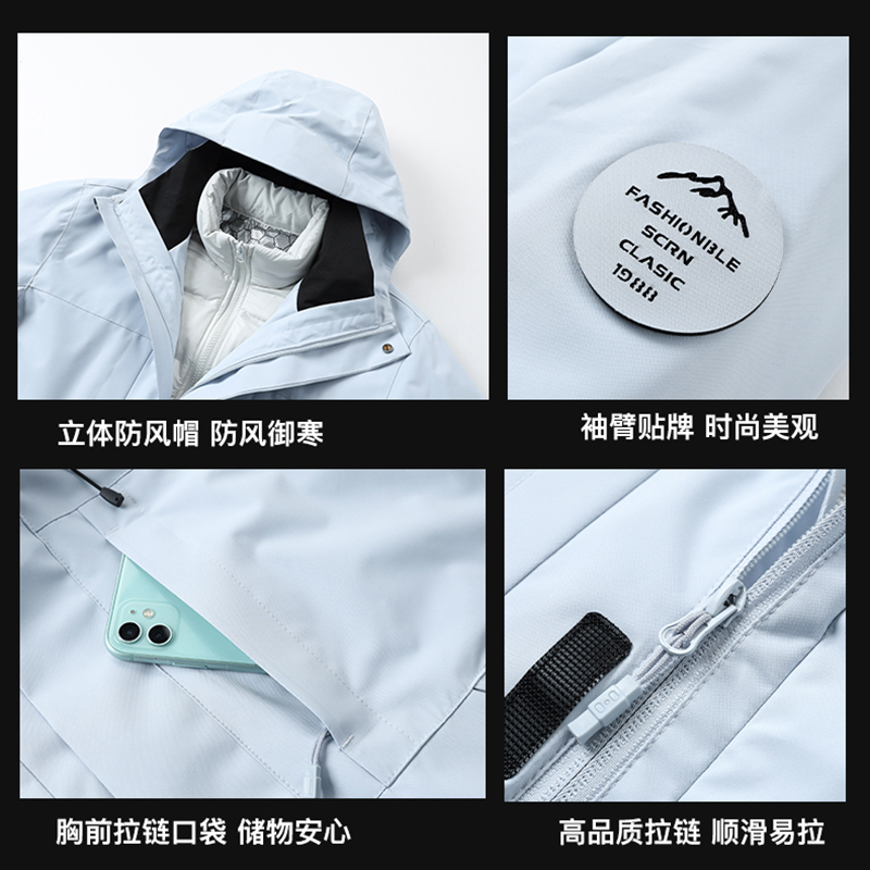 稻草人2025新款冲锋衣女羽绒三合一可拆卸内胆防风防水莲雾紫外套