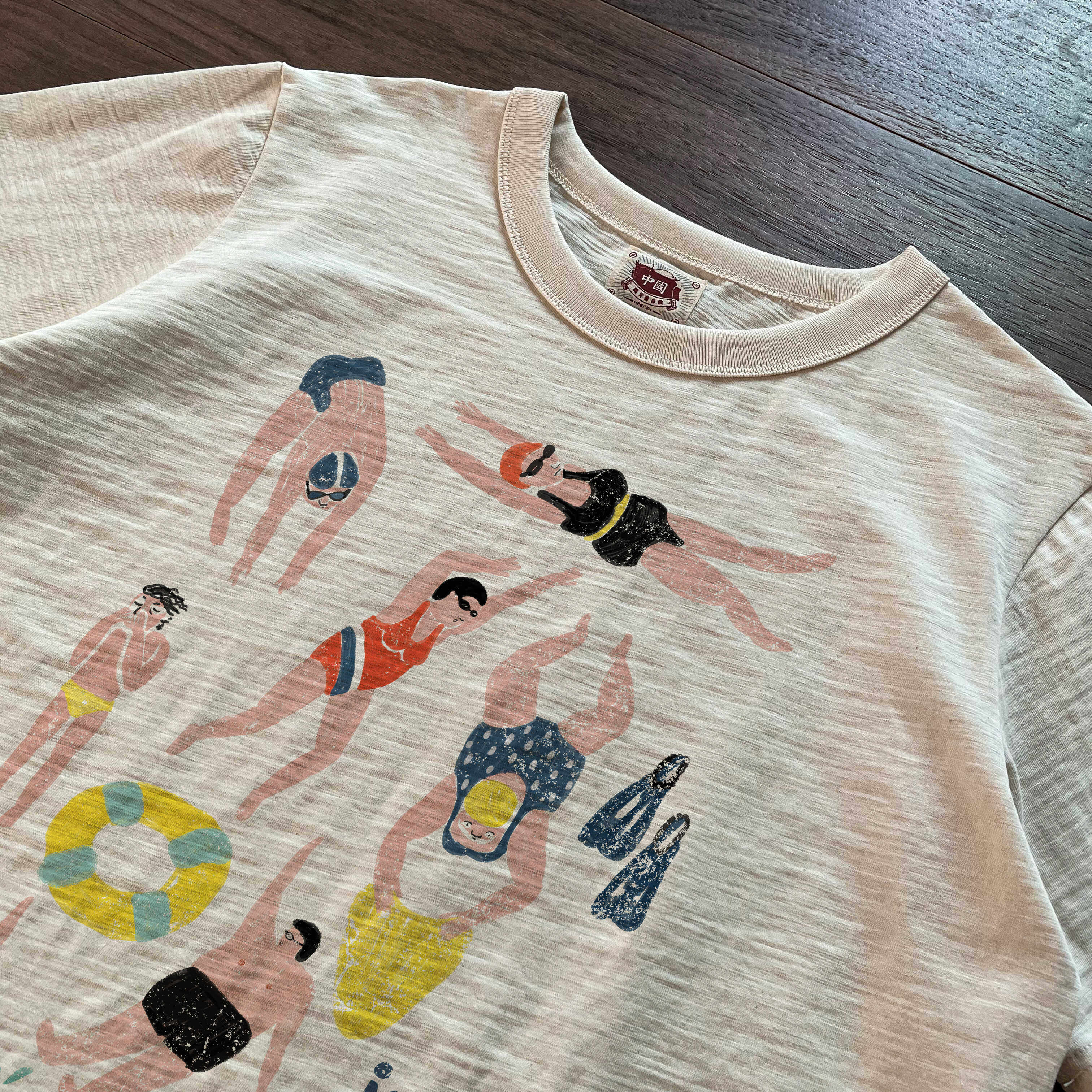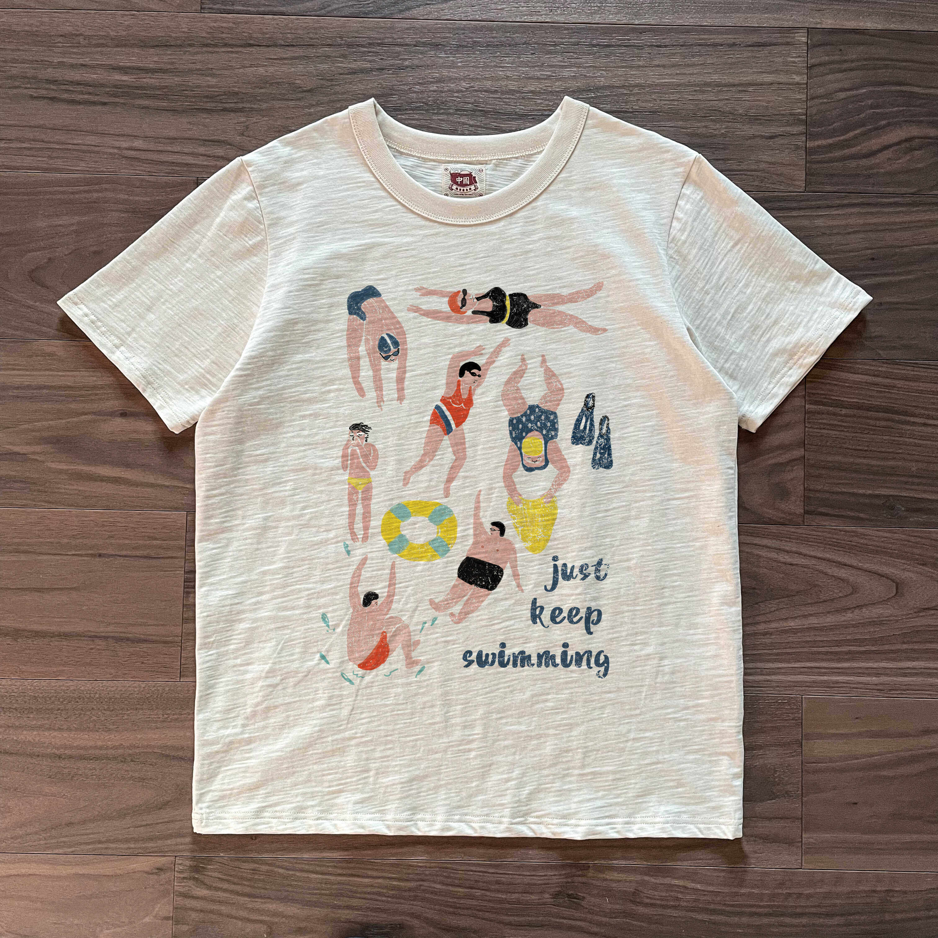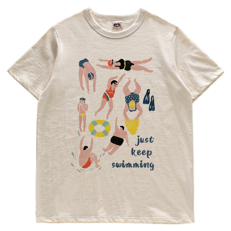 谢先绅宽松复古夏季男女同款纯棉短袖T恤圆领手绘游泳打底竹节棉