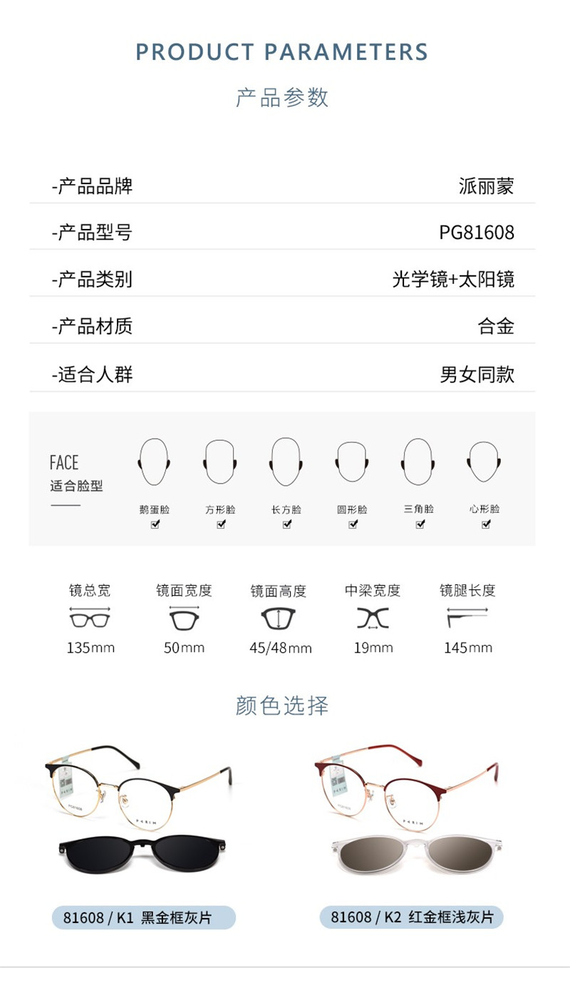 派丽蒙套镜PG81608女近视防辐射眼镜男驾驶偏光磁吸墨镜