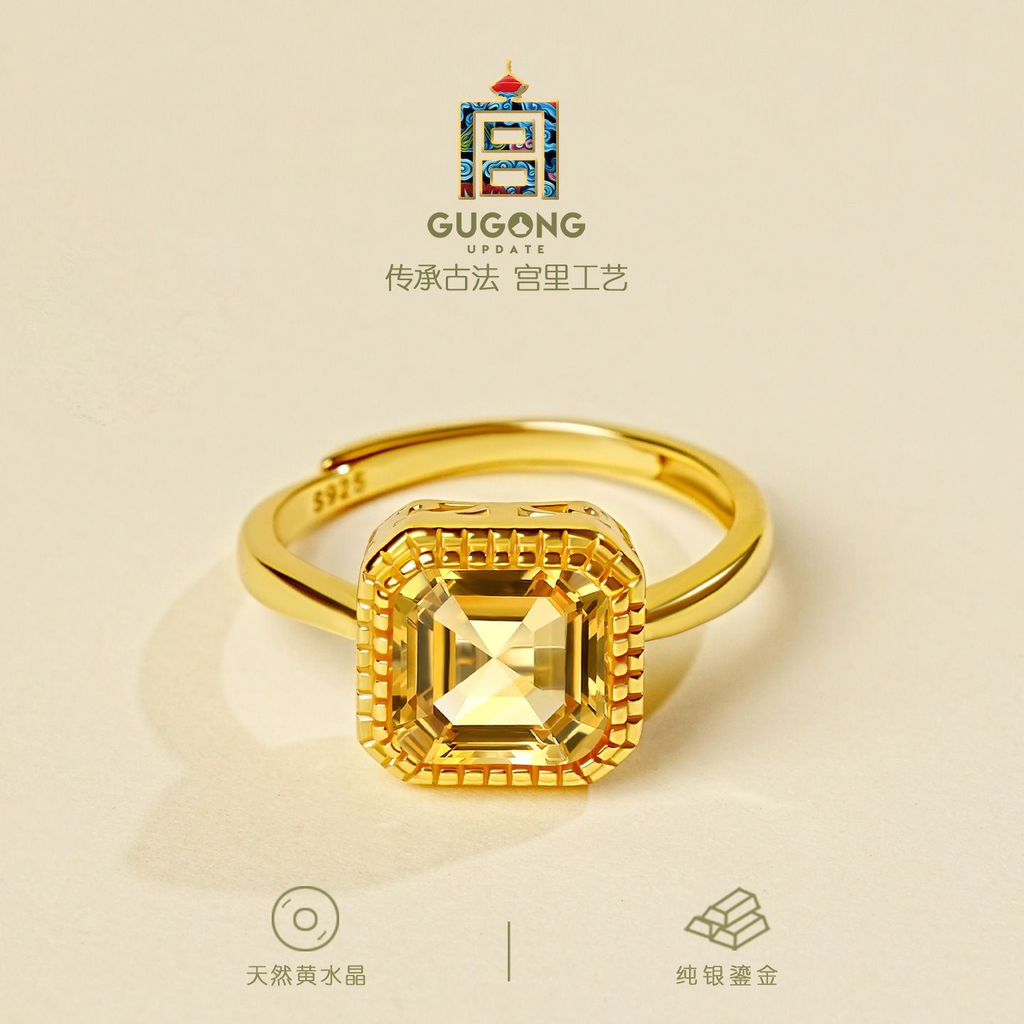 宫里上新黄水晶戒指女小方糖天然宝石纯银女式旺财生日礼物送妈妈