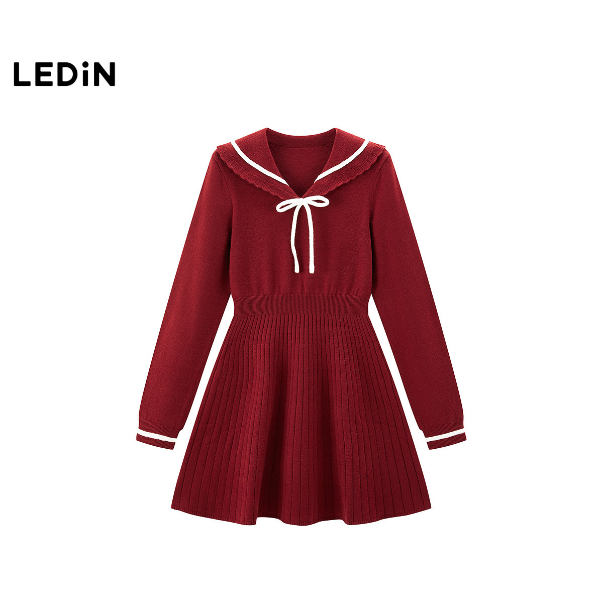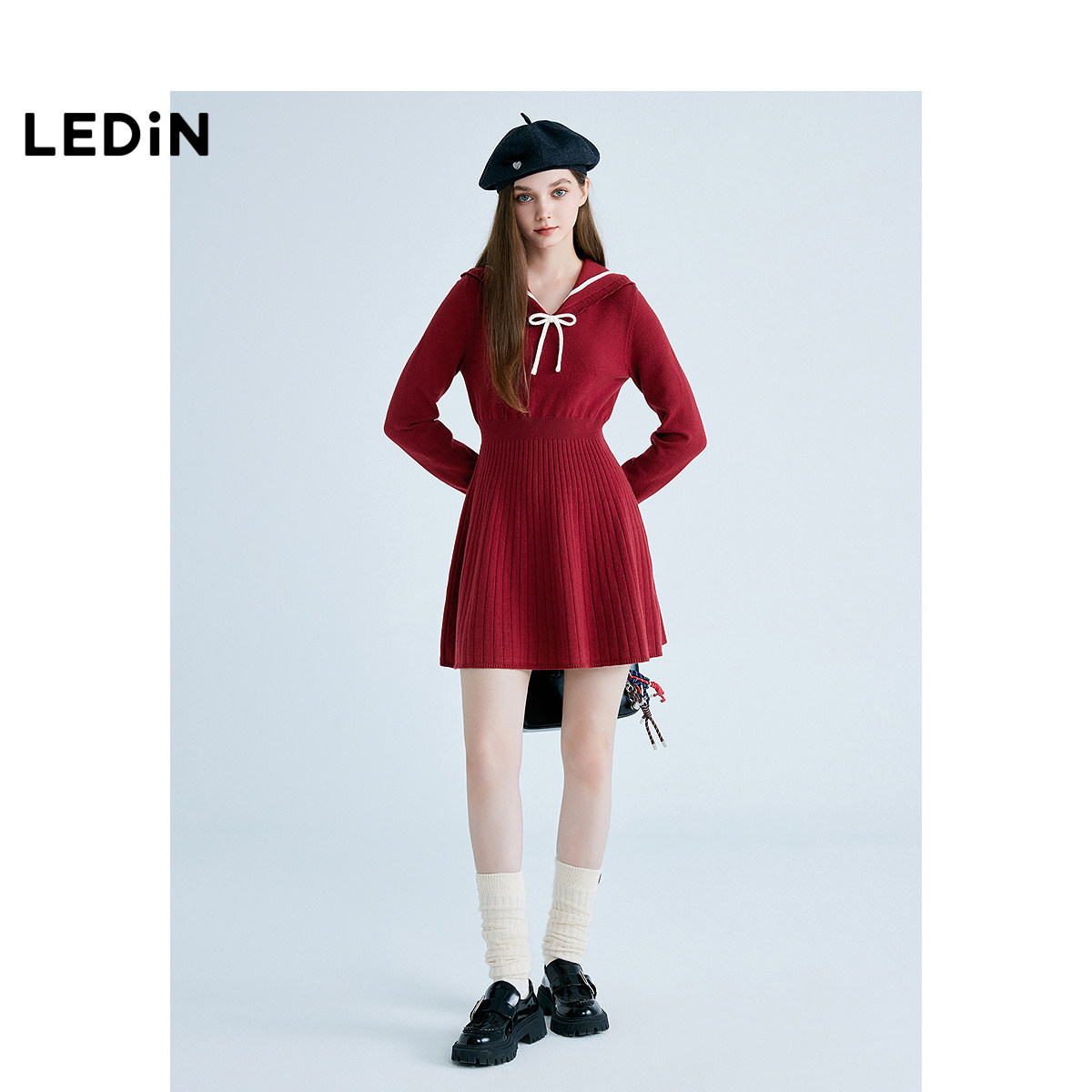 【商场同款】乐町甜美收腰连衣裙秋季学院风翻领针织裙C1FAF1204