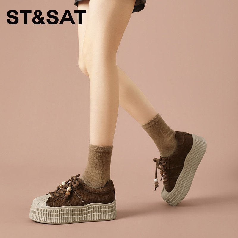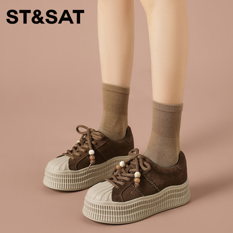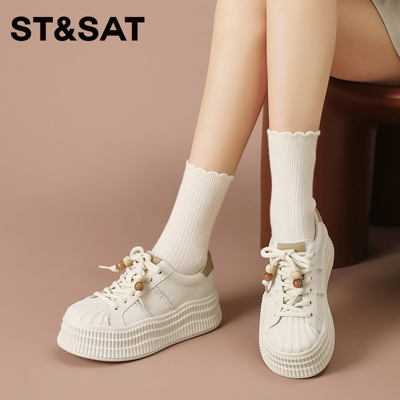 星期六厚底小白鞋女款2025新款秋季鞋子休闲板鞋面包鞋贝壳鞋女鞋