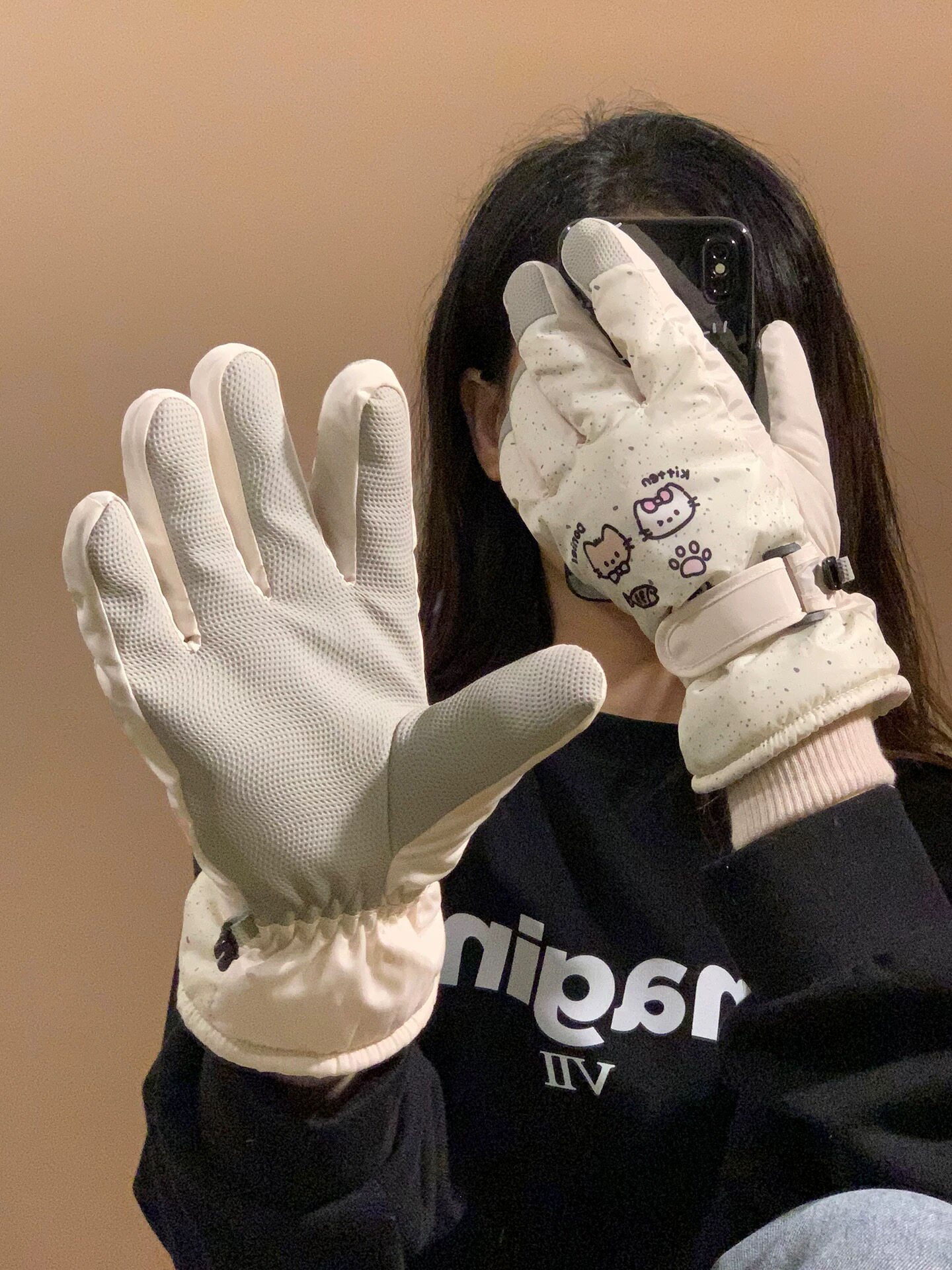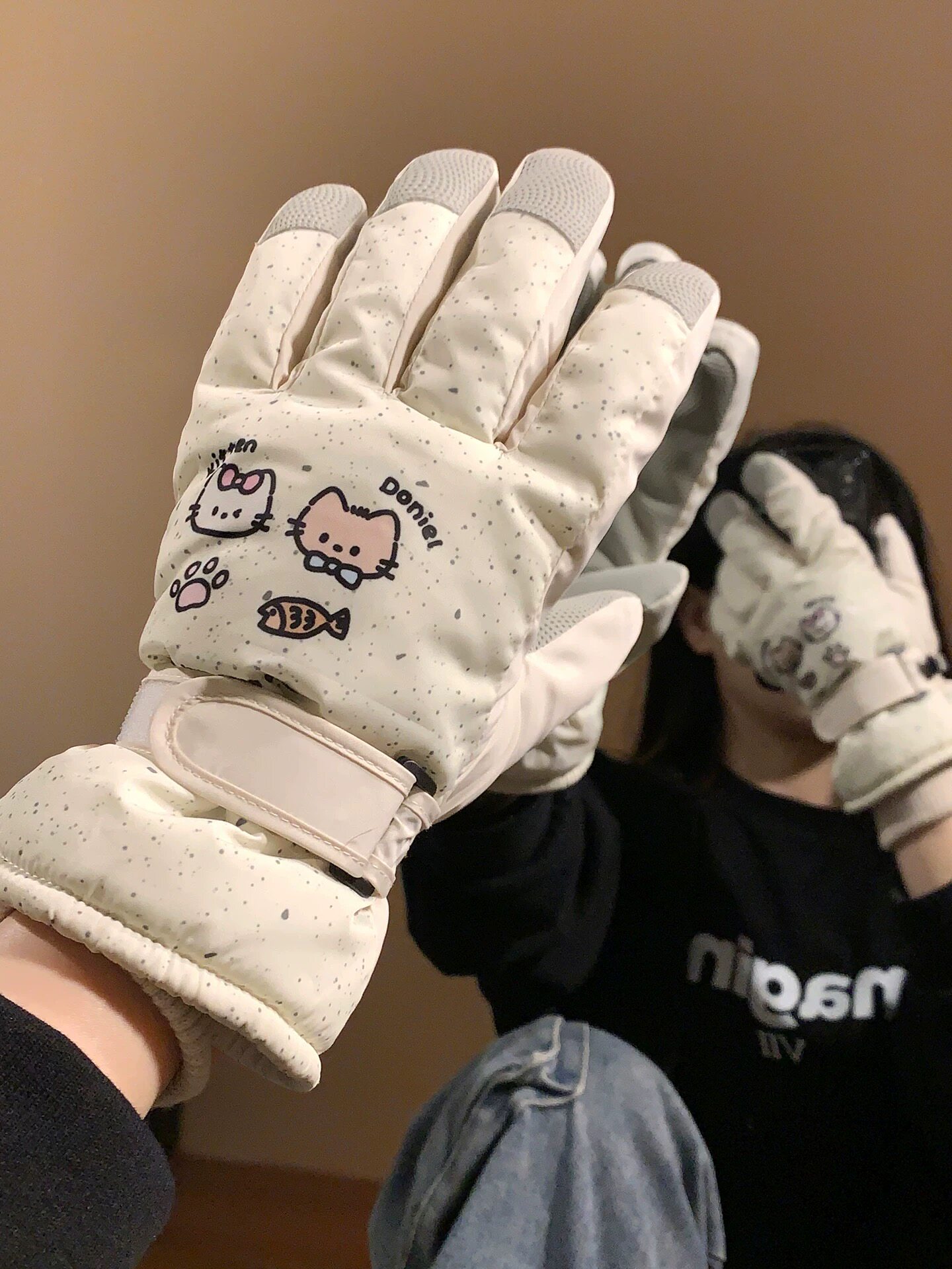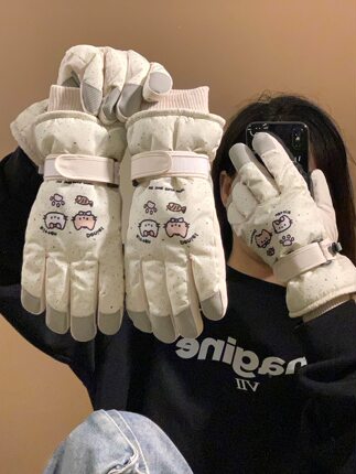 新款卡通斑点滑雪手套冬季加绒户外骑行防风防水防寒保暖可触屏女