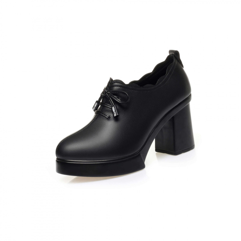 冬秋软皮女单鞋深口系带装饰拉链