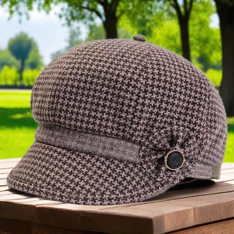 秋冬季妈妈毛呢鸭舌帽中老年人帽子女老人奶奶加厚保暖老太太棉帽