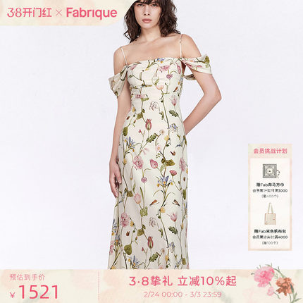 Fabrique【郁花园】桑蚕丝真丝落肩两穿印花鱼尾连衣裙女春夏吊带