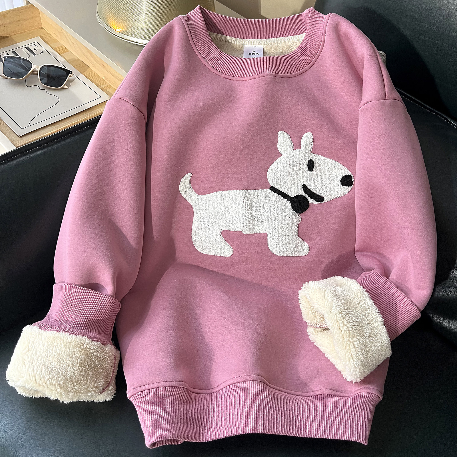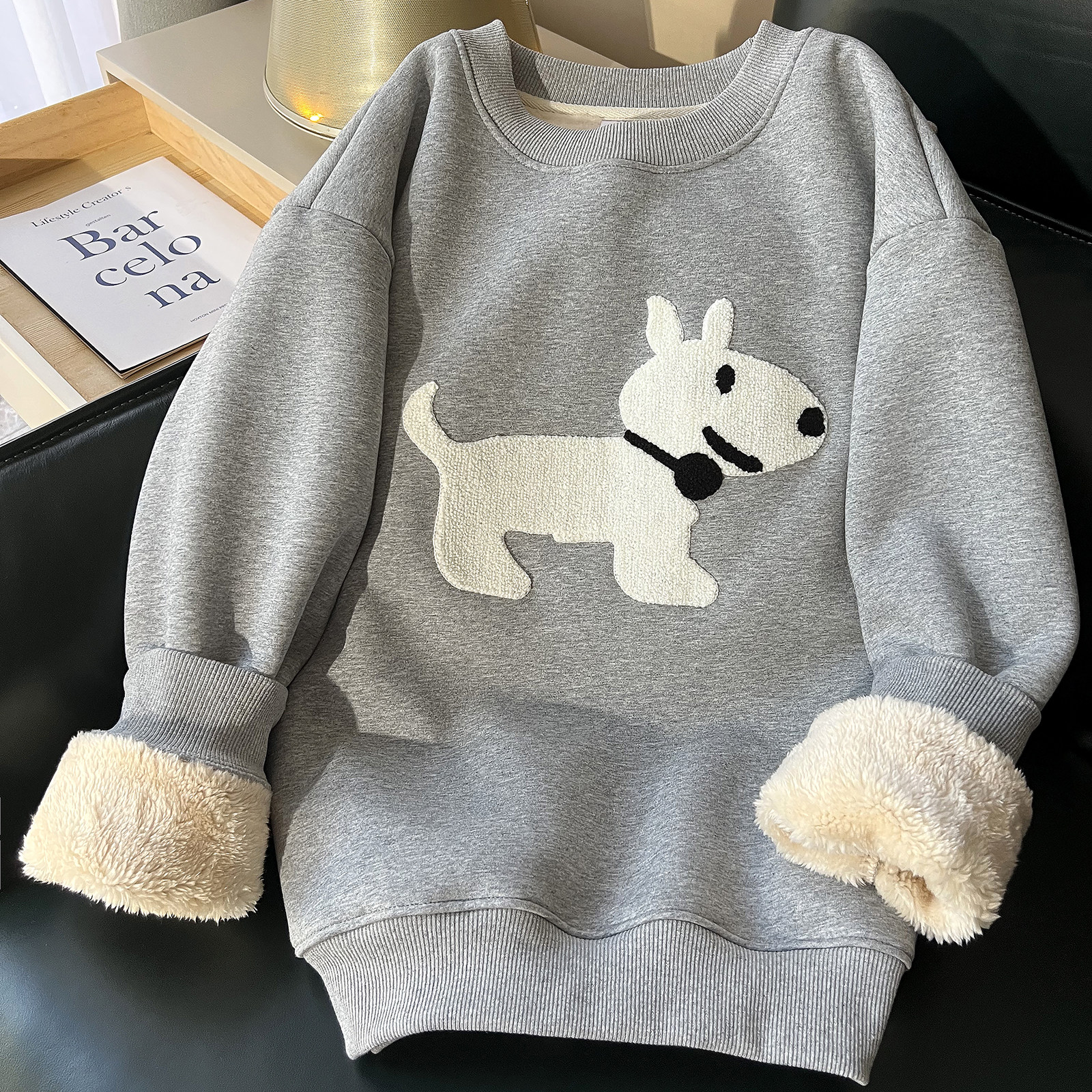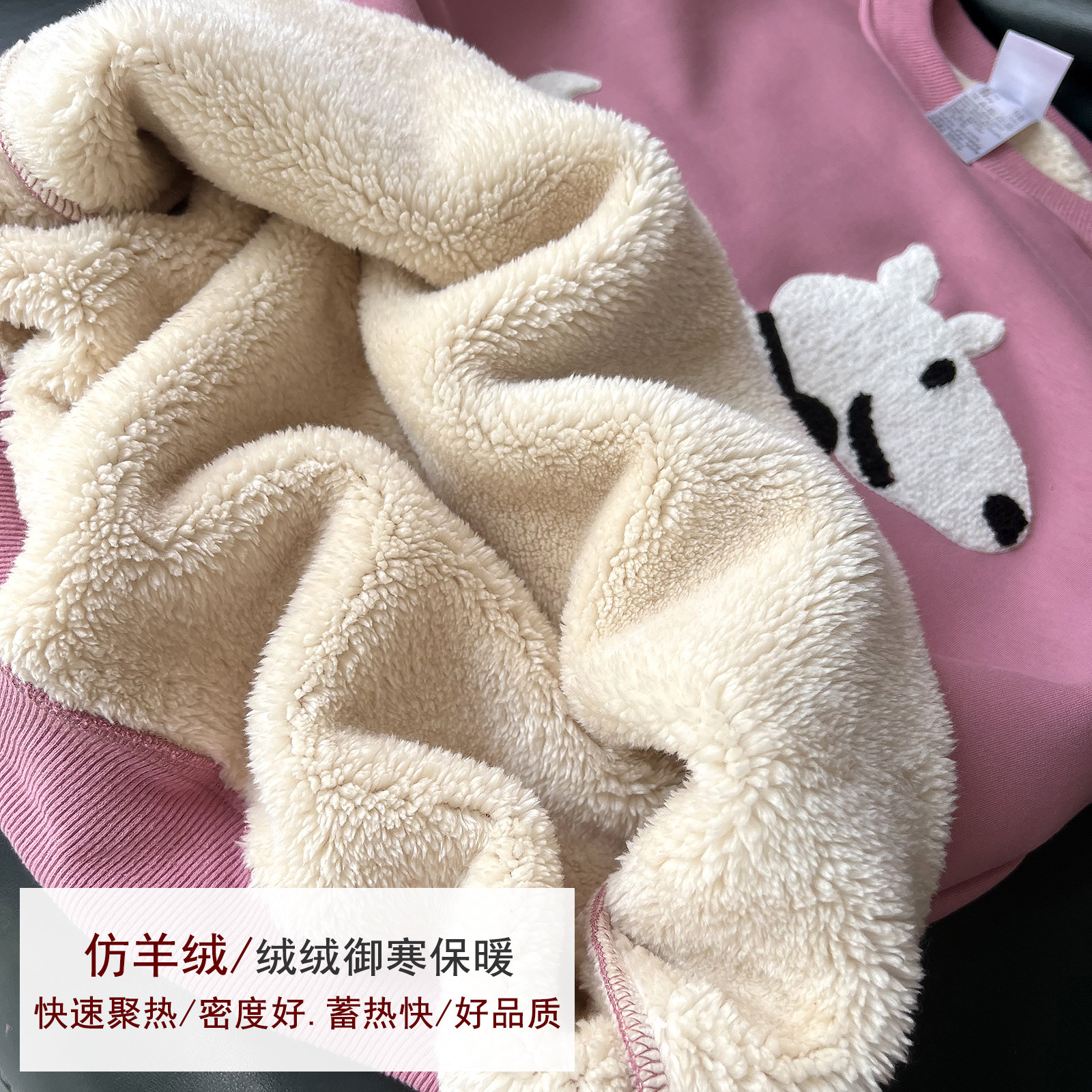 加绒加厚圆领卫衣女2025新款宽松休闲仿羊羔绒套头保暖上衣秋冬季