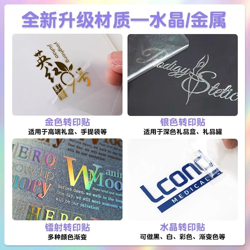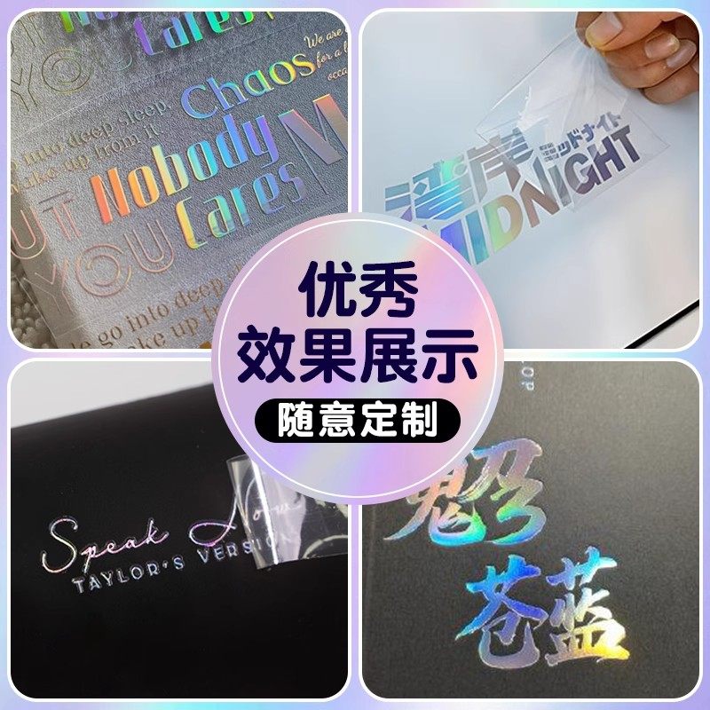 镭射uv转印贴纸定制撕膜留字冷转移丝印logo礼盒烫金属镂空立体分离刻字母商标签汽车贴七彩渐变雷射水晶标贴