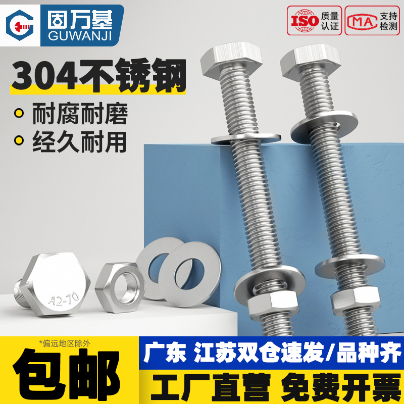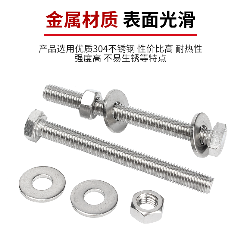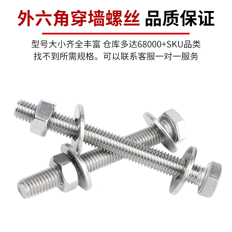 304不锈钢外六角螺栓穿墙螺丝杆螺母套装大全加长螺杆M6M8M10-M27