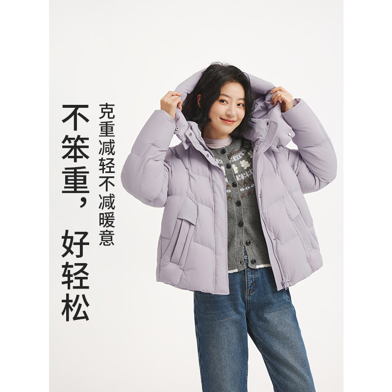 热风女士羽绒服2025年冬季新款连帽蓬松泡芙羽绒服保暖御寒羽绒服